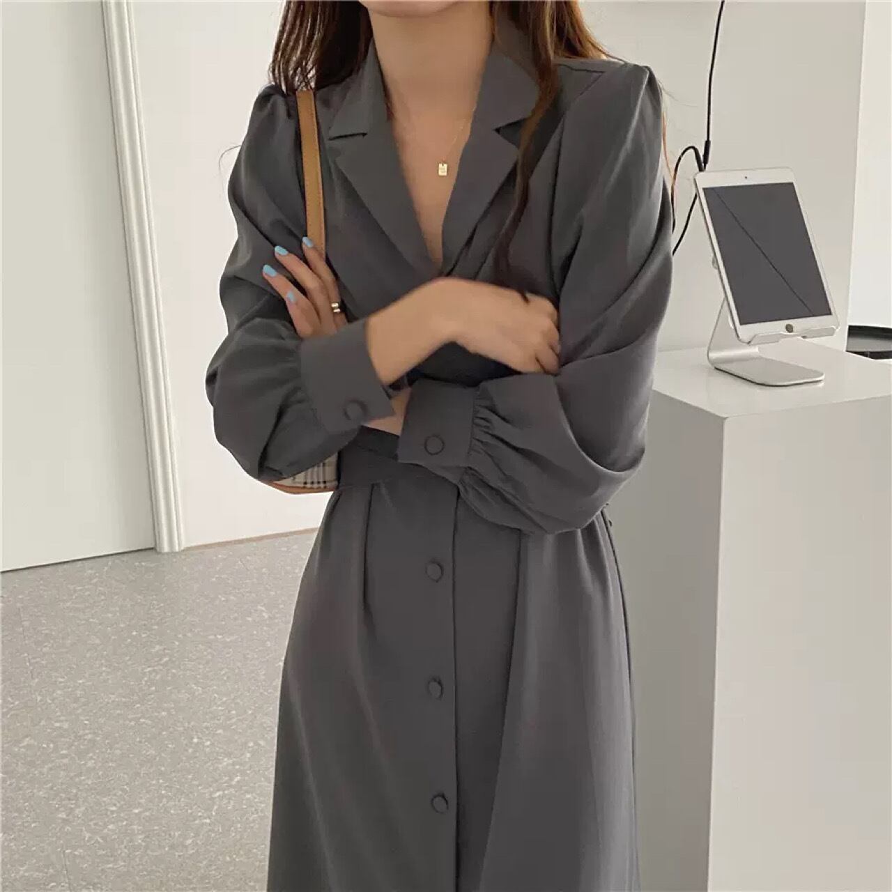 シャツワンビース ロングワンピース レディース 大人可愛い オシャレ 韓国ファッション
