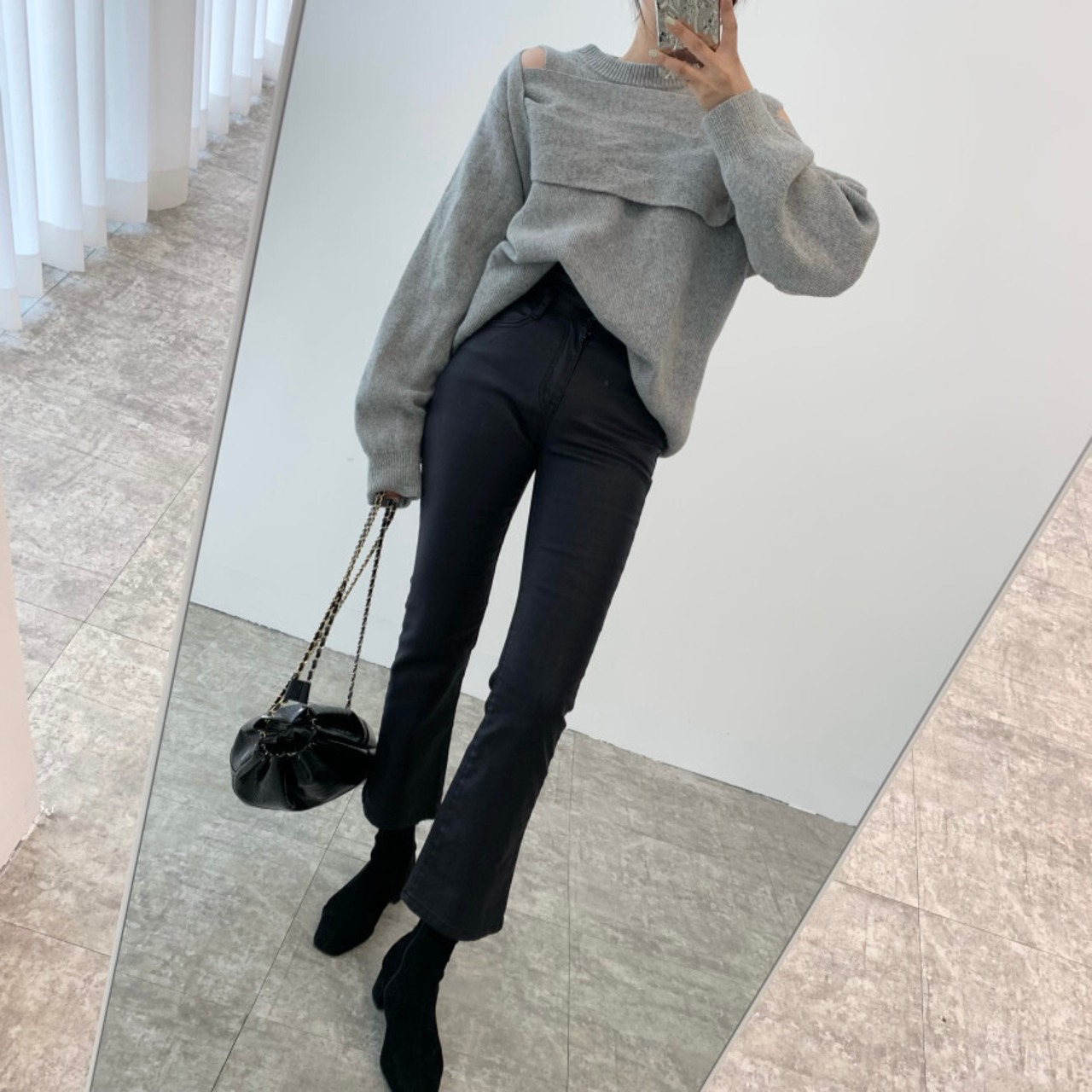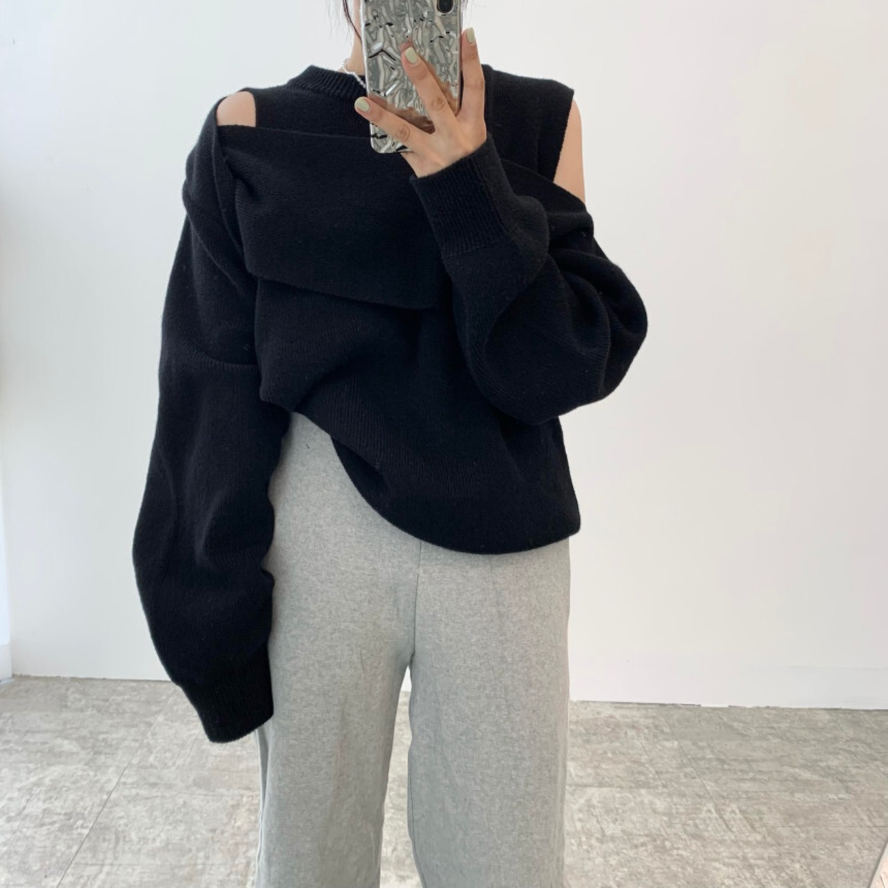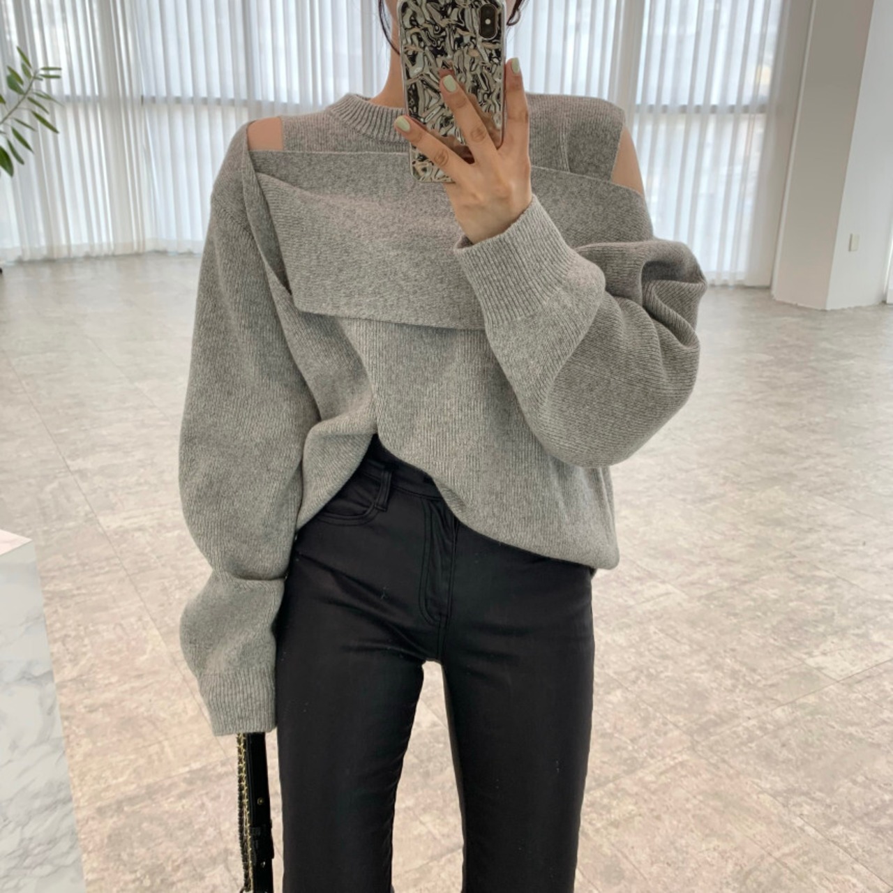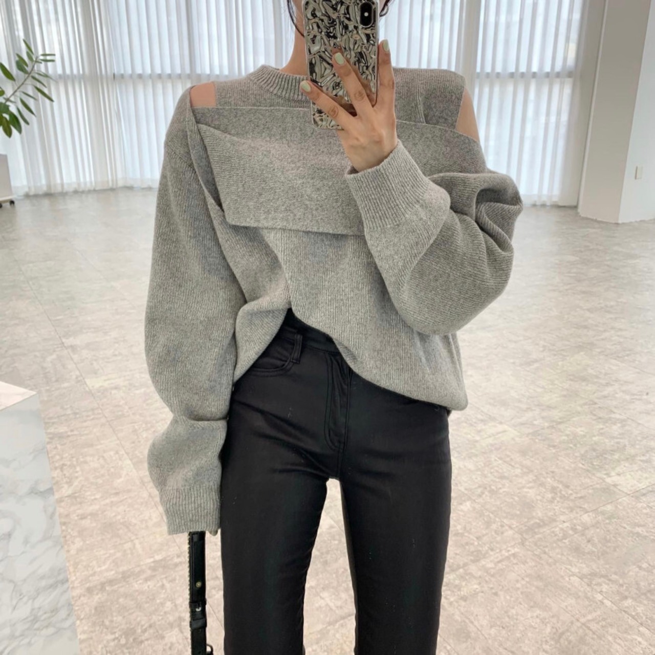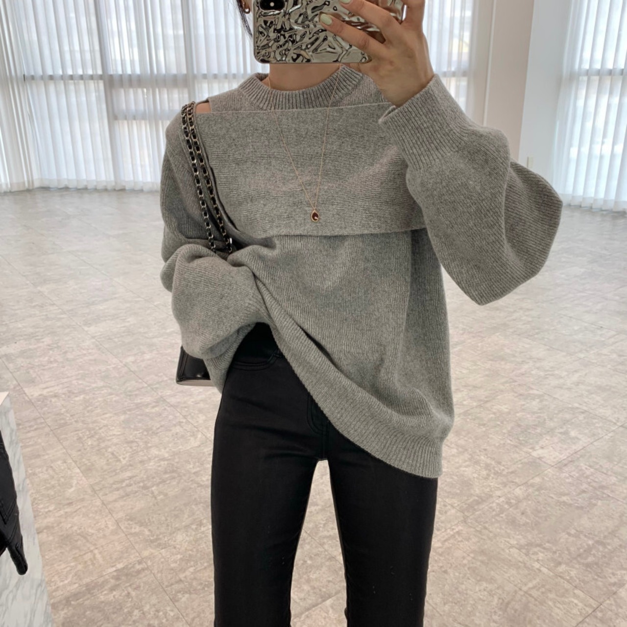 トップス 長袖 レディース 婦人服 ゆったり ニット セーター スプライシングデザイン 韓国ファッション 大人可愛い セクシー2color