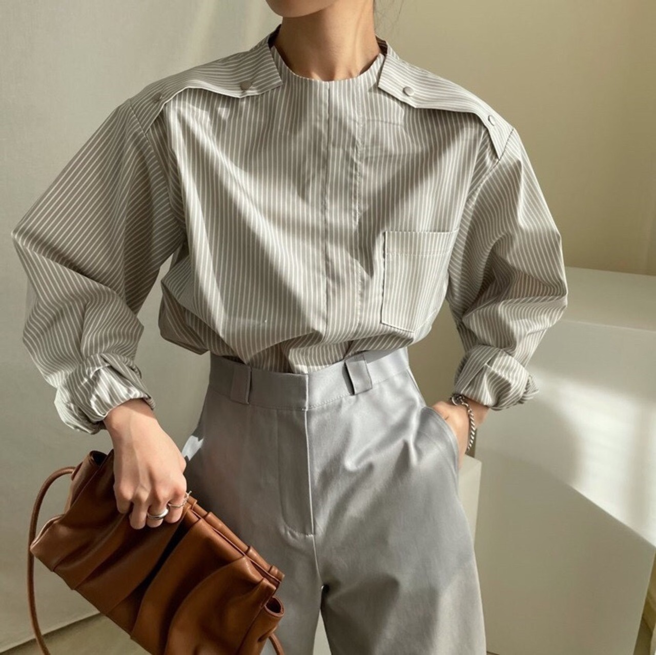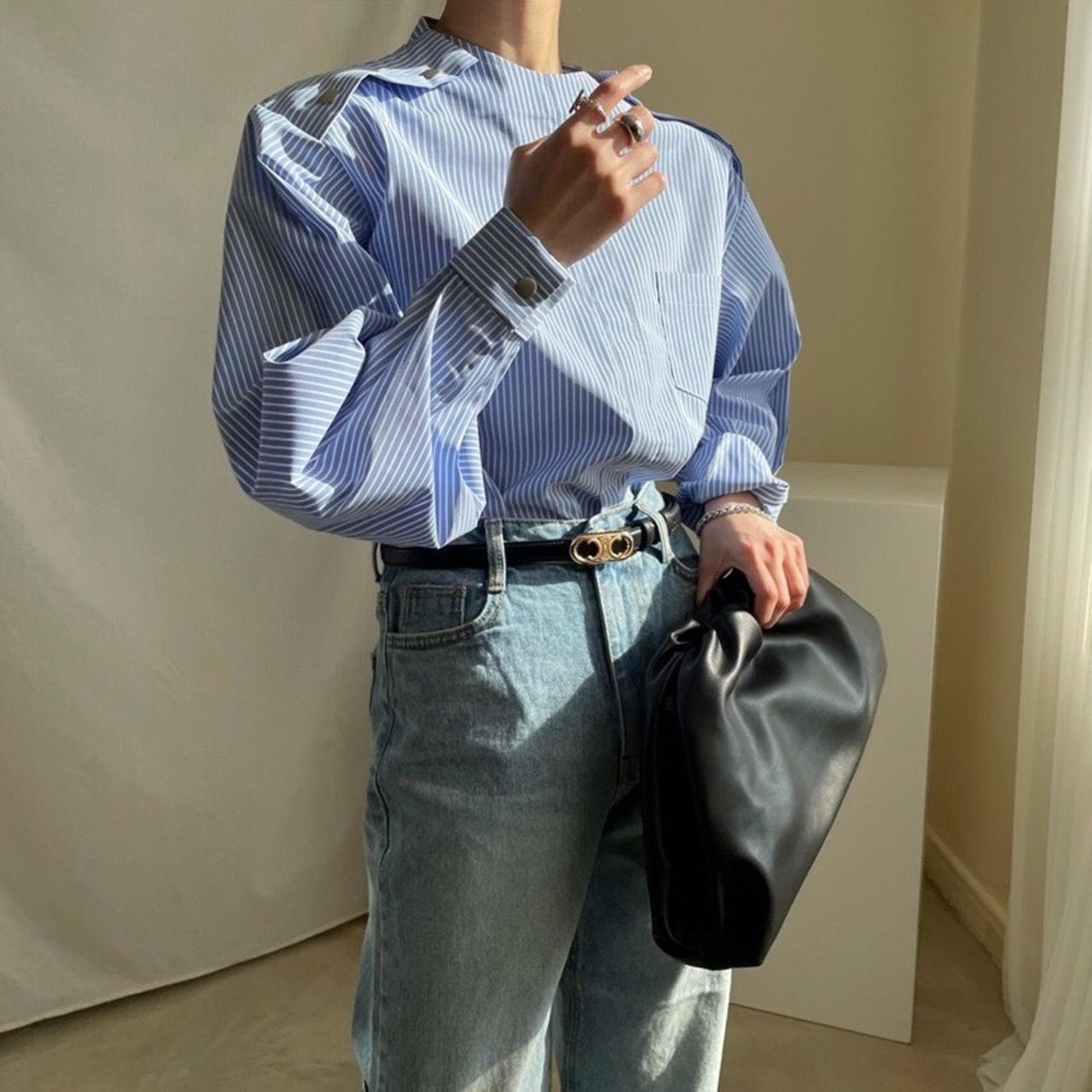 シャツ 長袖 トップス レディース 婦人服 ビジネス カジュアル 韓国ファッション 大人可愛い ストライプ