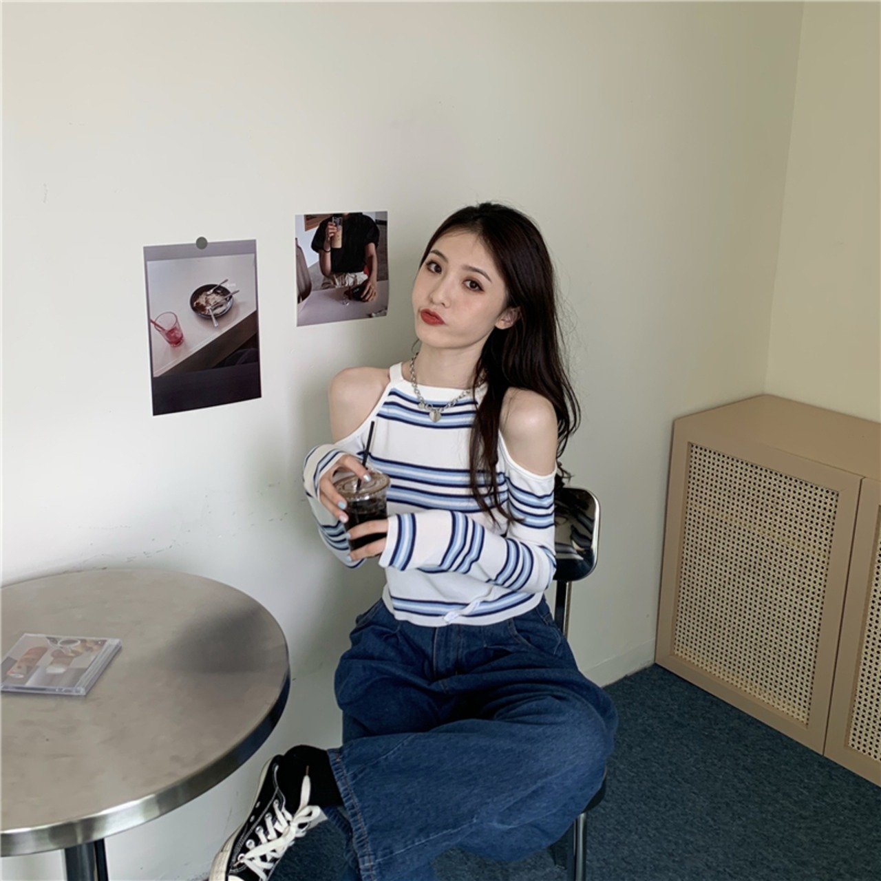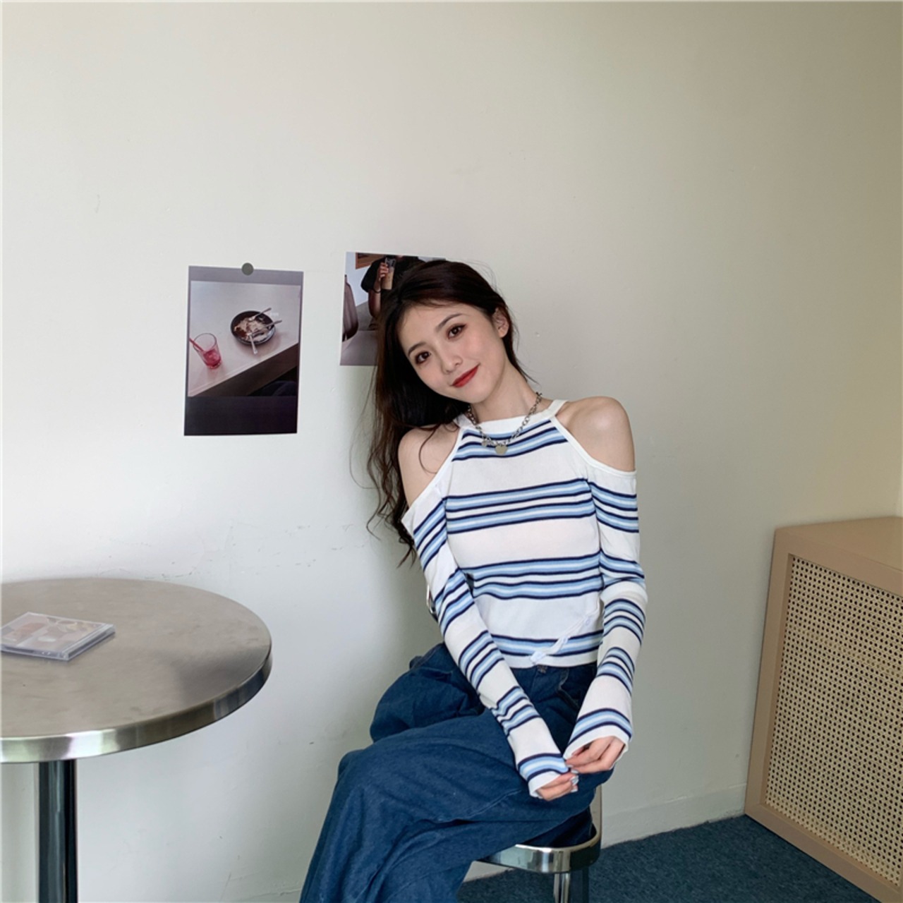 トップス レディース オフショル ストライプ セクシー 可愛い 韓国ファッション 大人可愛い