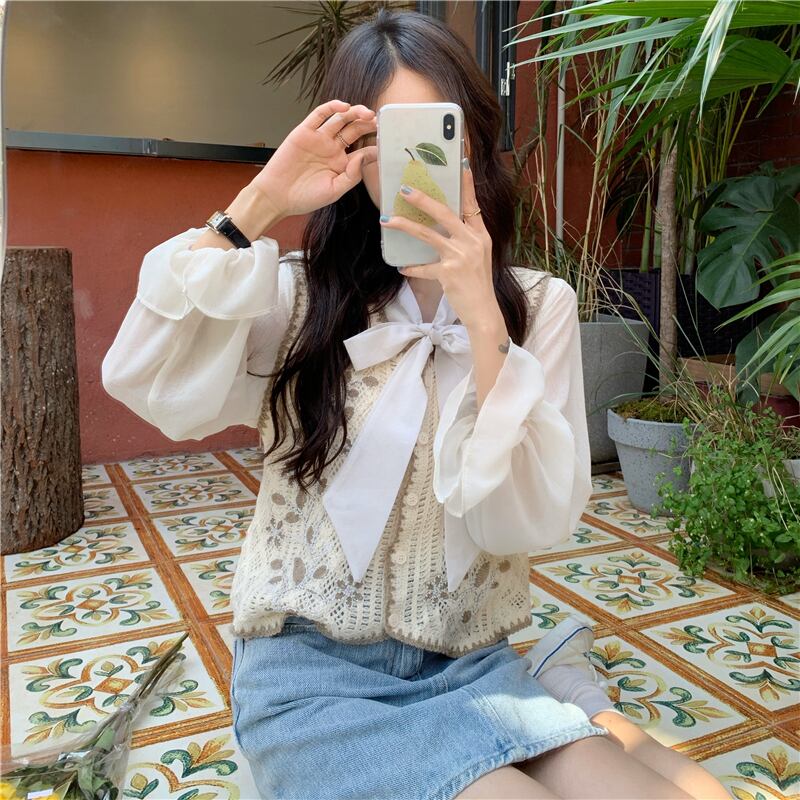 ブラウス ニット リボンブラウス レディース フェミニン 韓国ファッション 可愛い おしゃれ