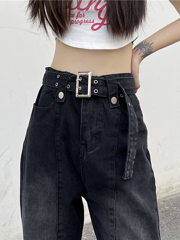 デニムパンツ ボトム ハイウエスト 美脚 ワントーン 無地 ベーシック シンプル 韓国ファッション S-L