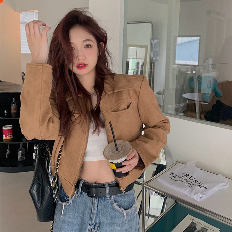 ショートジャケット アウター ジャケット ワントーン 無地 シンプル カジュアル 韓国ファッション