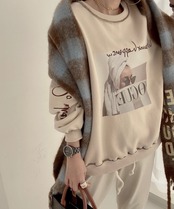 ルーズプルオーバー デザイントップス ルーズ トレーナー プリント メッセージ トップス 長袖 シンプル カジュアル レトロ 韓国ファッション 3color