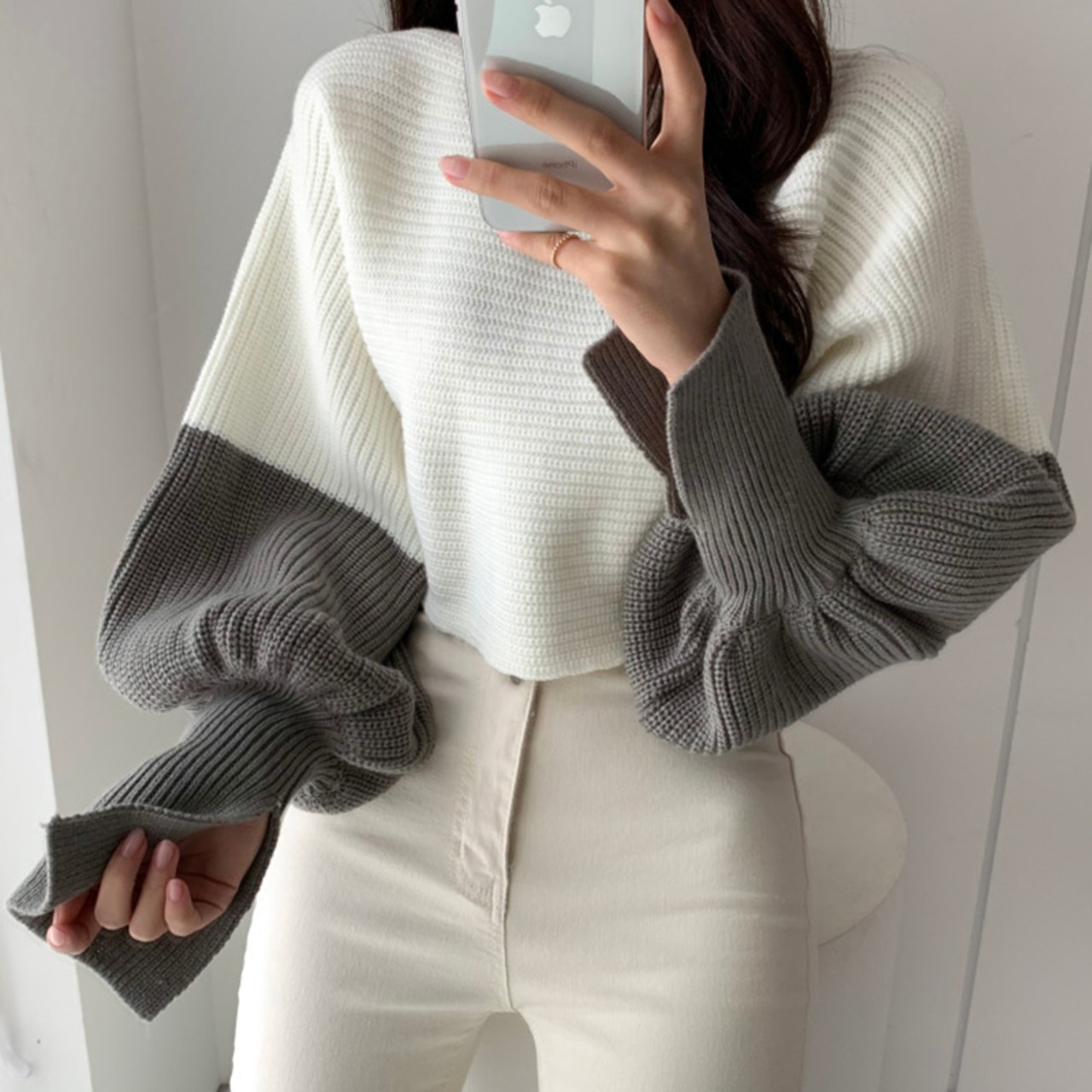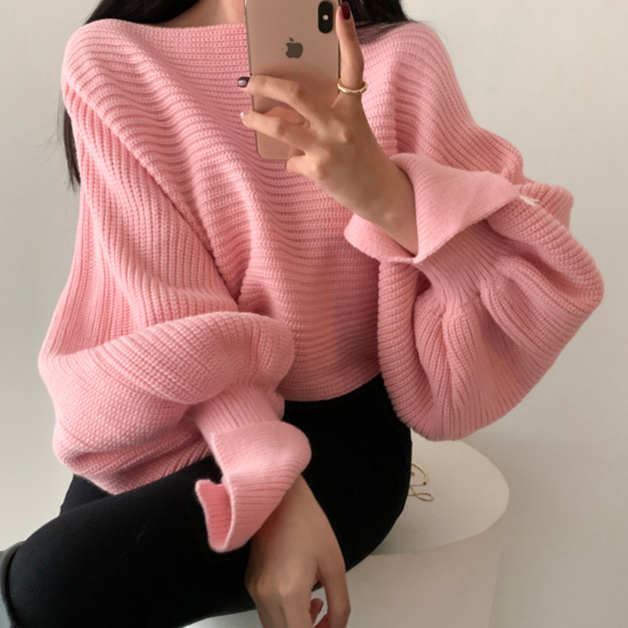 ランタンスリーブニット ニット ボリューム袖 トップス ルーズ 長袖 トレンド カジュアル レトロ 大人可愛い 韓国ファッション 3color