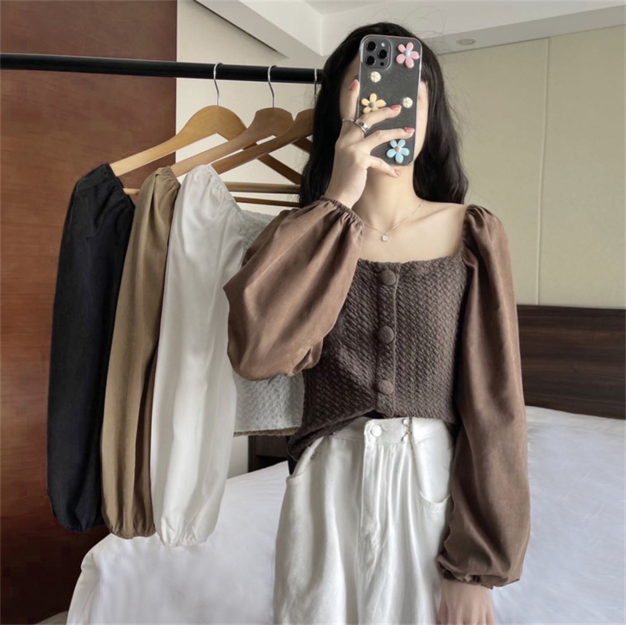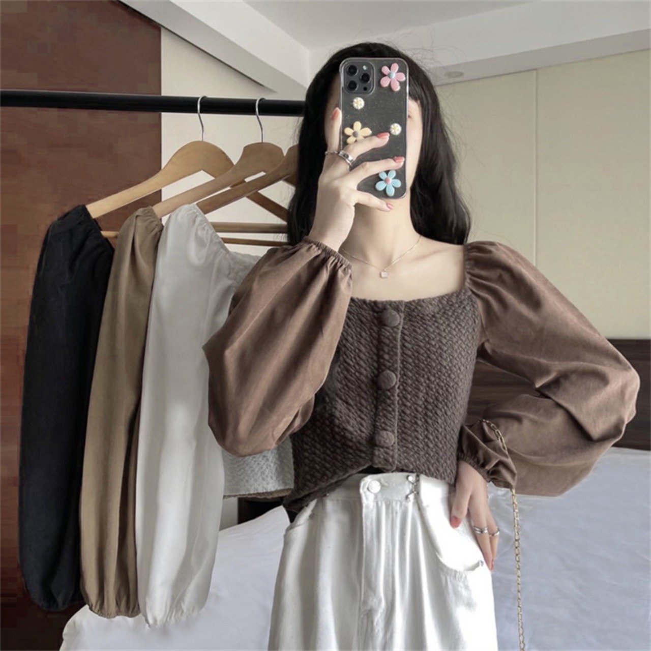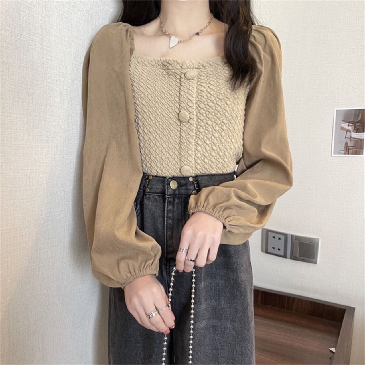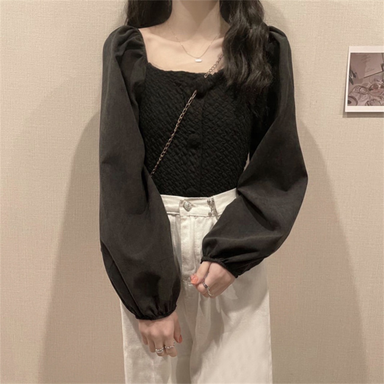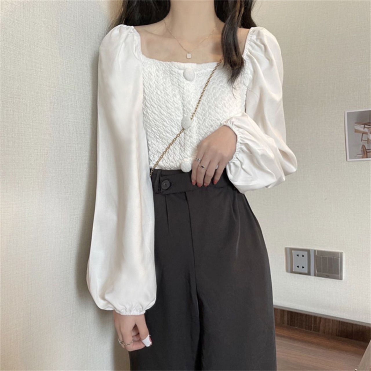 フロントボタンデザイン トップス カジュアル 大人可愛い 韓国ファッション レディース