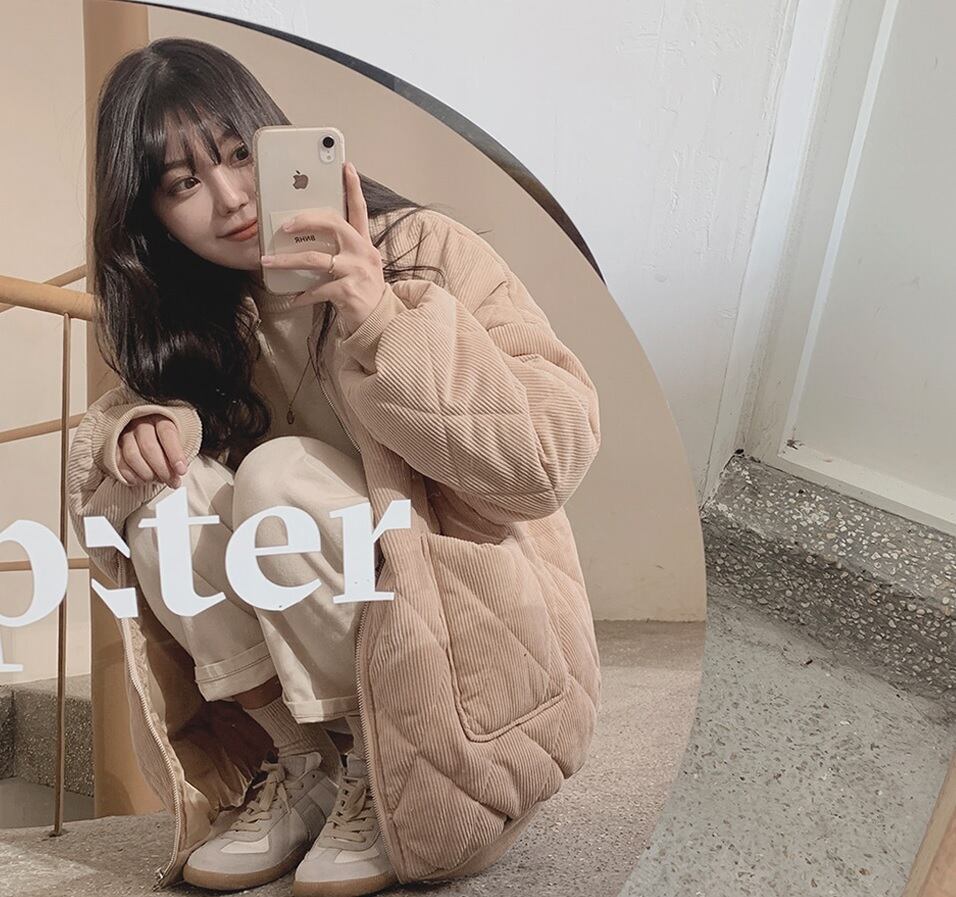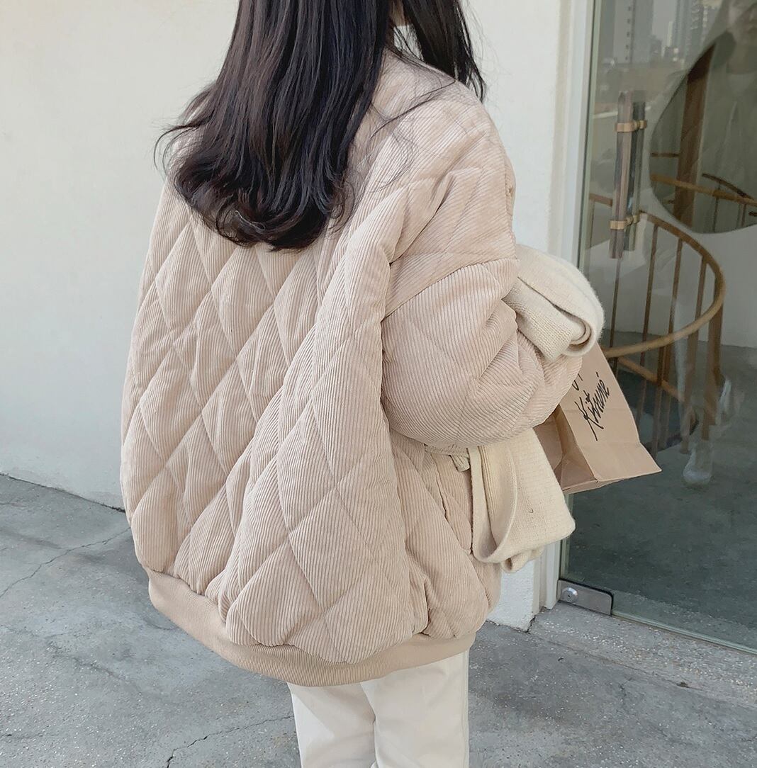 キルティングブルゾン ジャケット アウター 長袖 シンプル レトロ 通勤 通学 韓国ファッション 2color S-XL