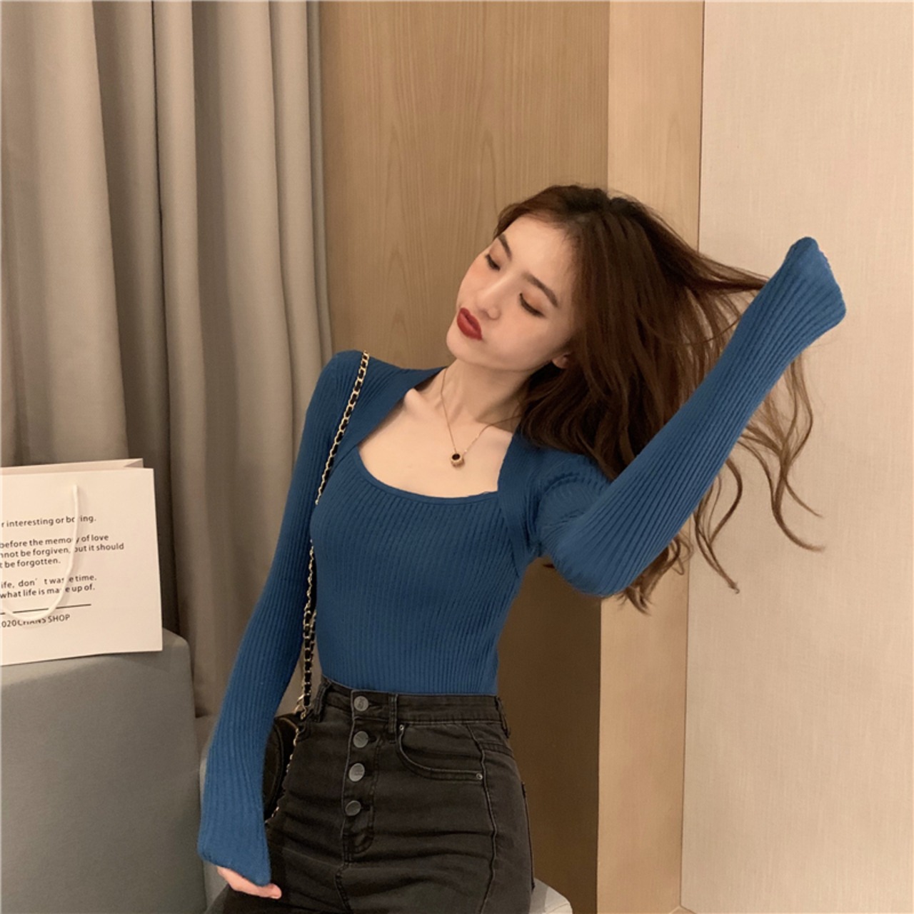 大人カジュアルでセクシーなニット。