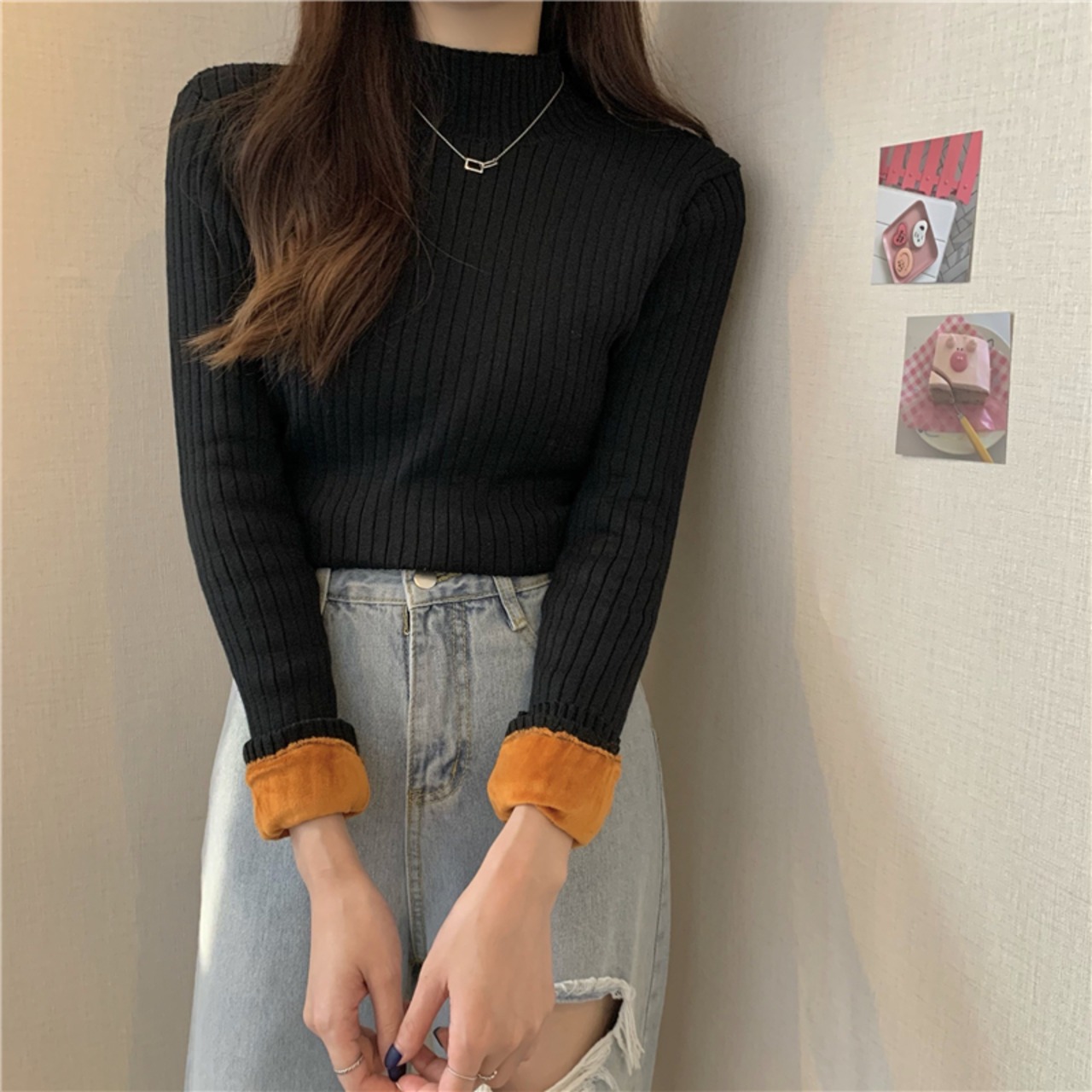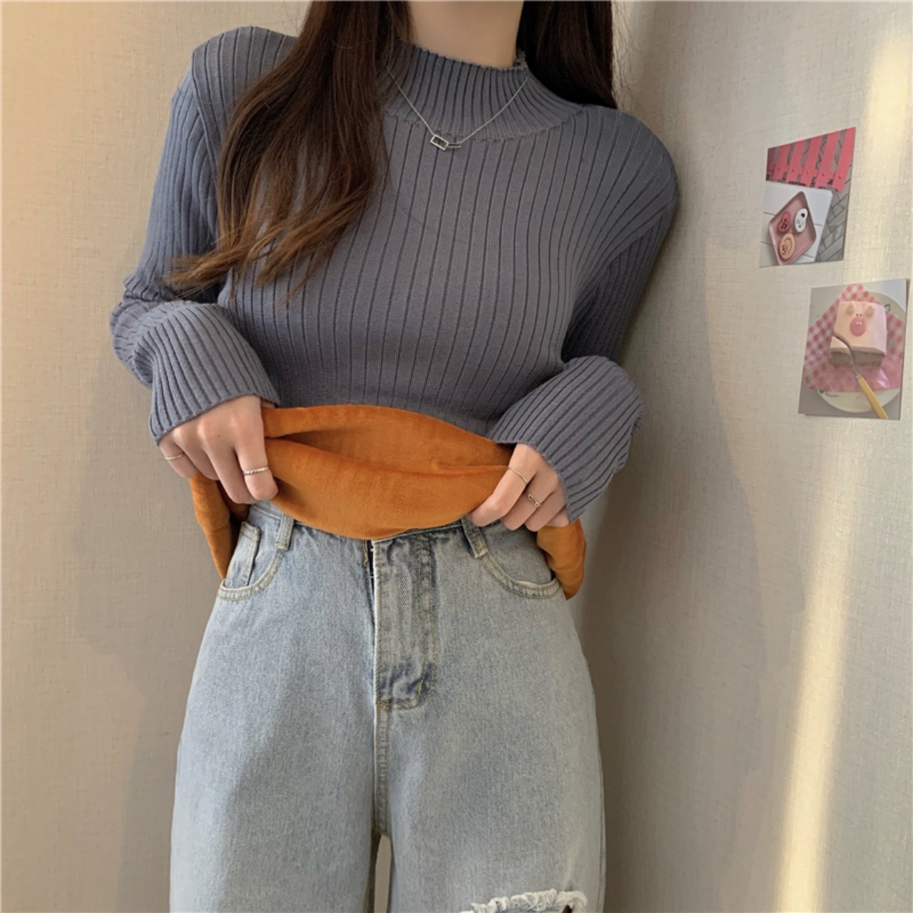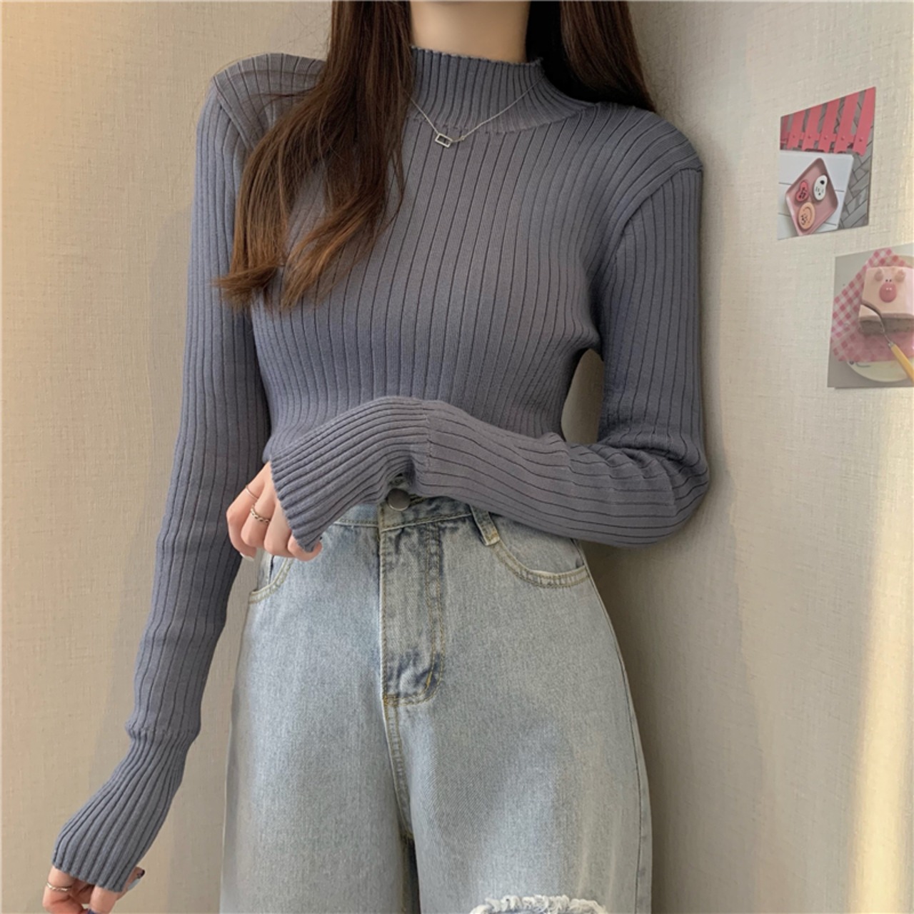 ニット セーター セミタートルネック レディース 韓国ファッション 無地