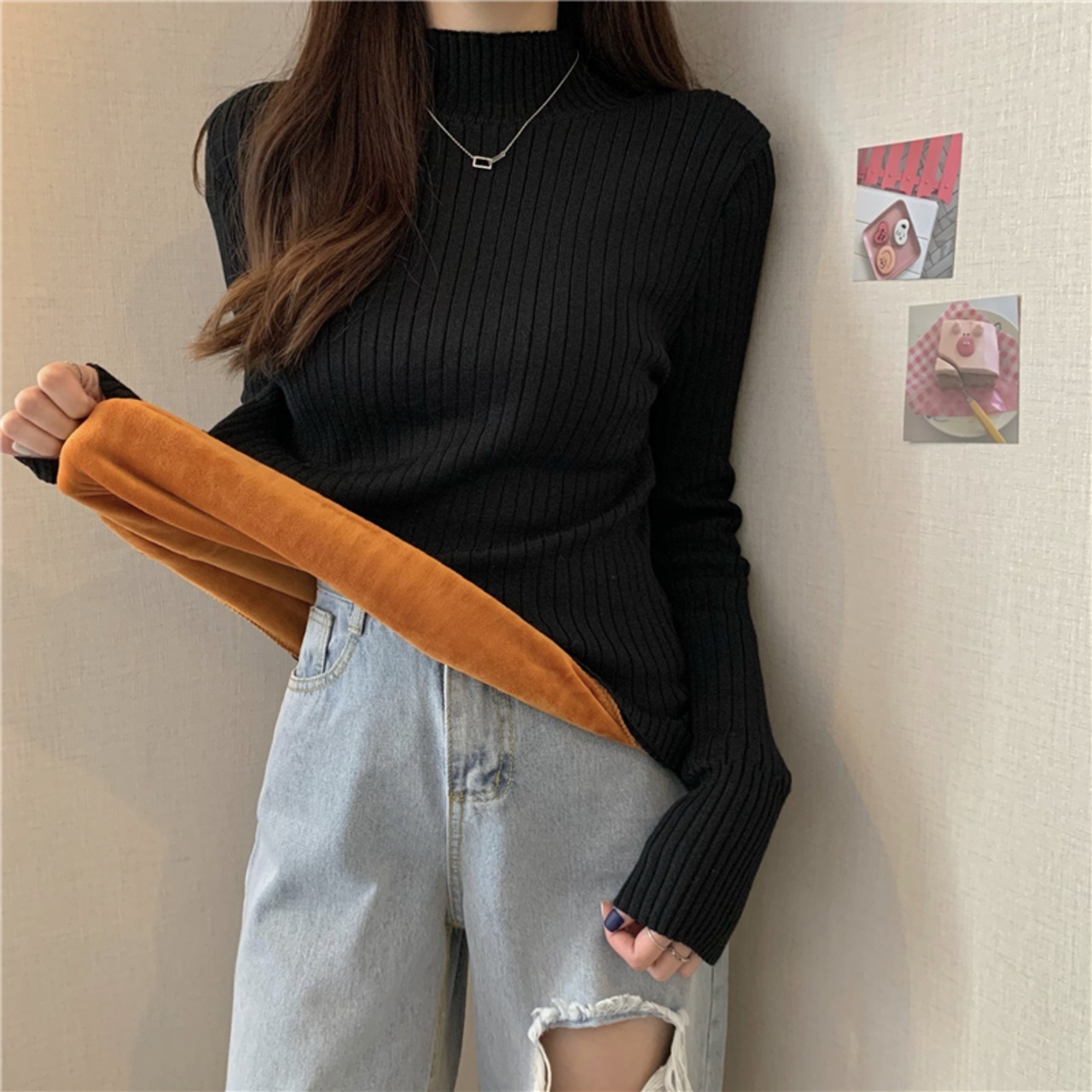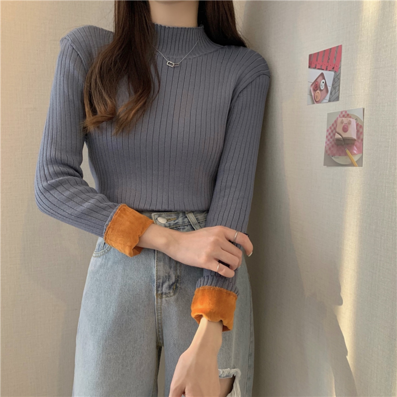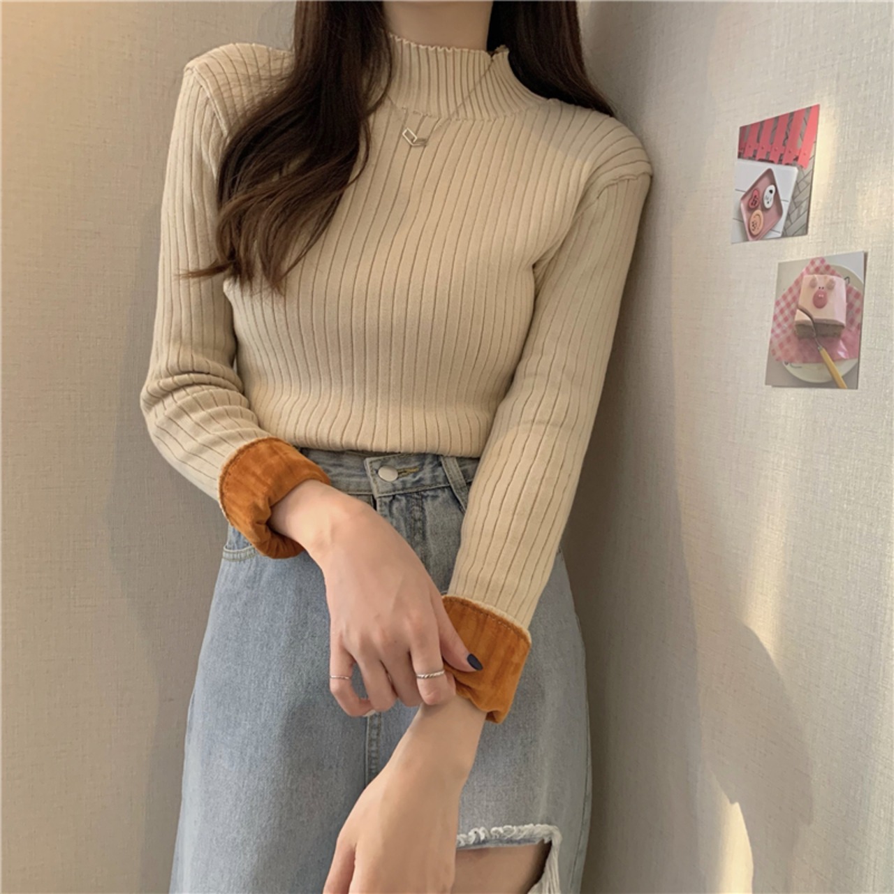 ニット セーター セミタートルネック レディース 韓国ファッション 無地