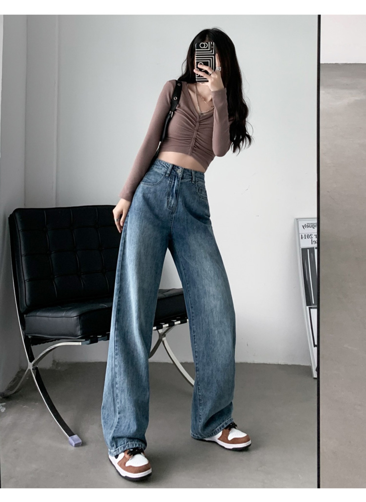 デニム レディース パンツ ロング 韓国ファッション ハイウエスト スリムワイド