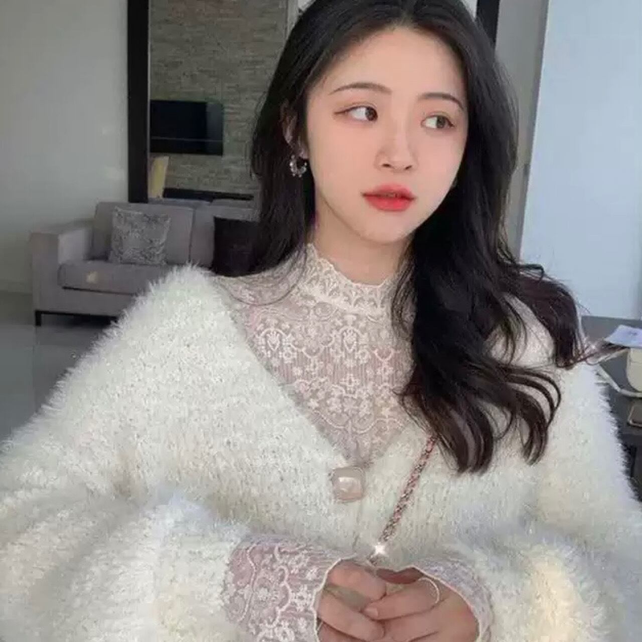 レーストップス タートルネック フェミニン 長袖 レディース 韓国ファッション