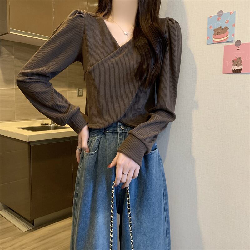 トップス Vネック レディース カジュアル 大人可愛い 韓国ファッション