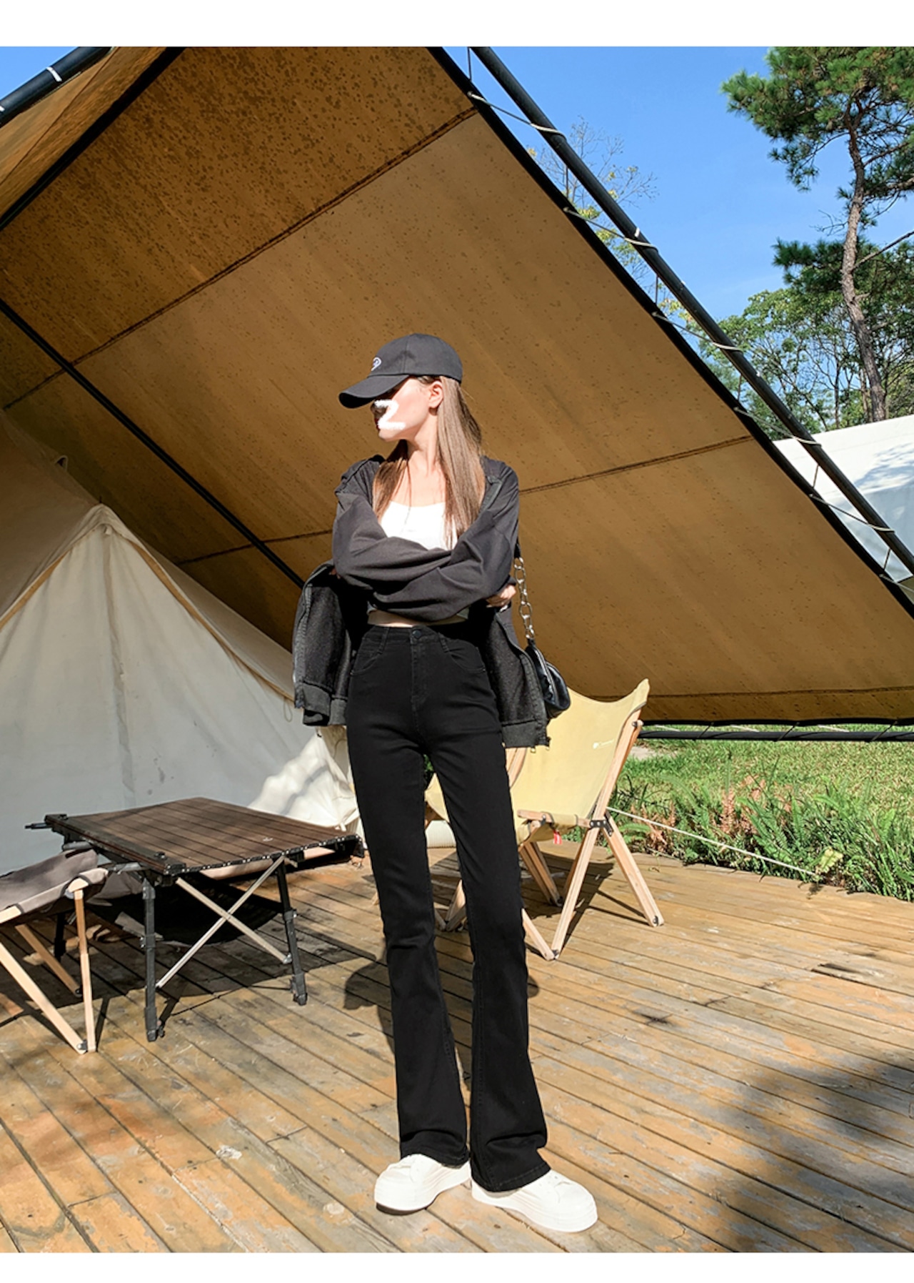 マイクロフレアジーンズ ボトムス レディース パンツ ハイウエスト 可愛い