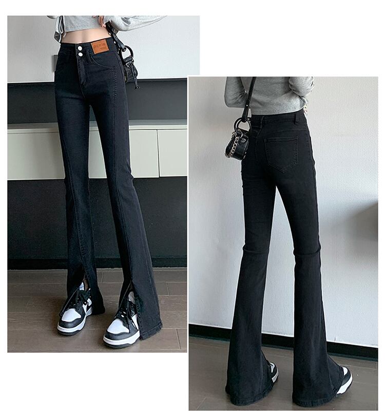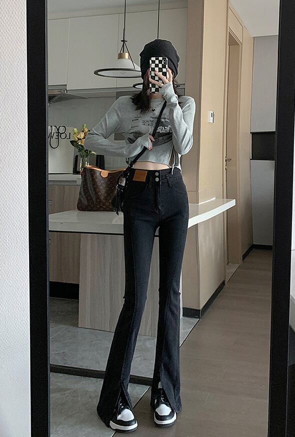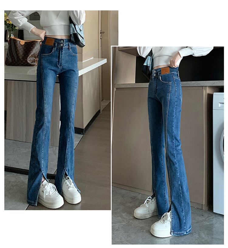 おしゃれな形のハイウエストデニムパンツ。