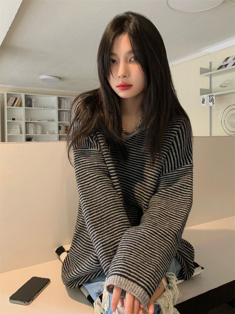 トップス ボーダー 韓国ファッション フード付き フーディー