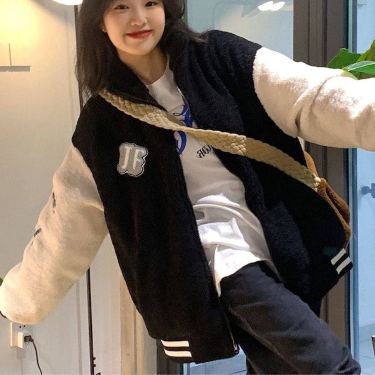 アウター もこもおこ 可愛い ワンポイント 韓国ファッション 大人可愛い