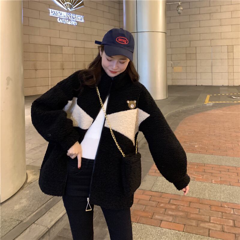 アウター もこもこ くま ワンポイント 可愛い オーバーサイズ レディース