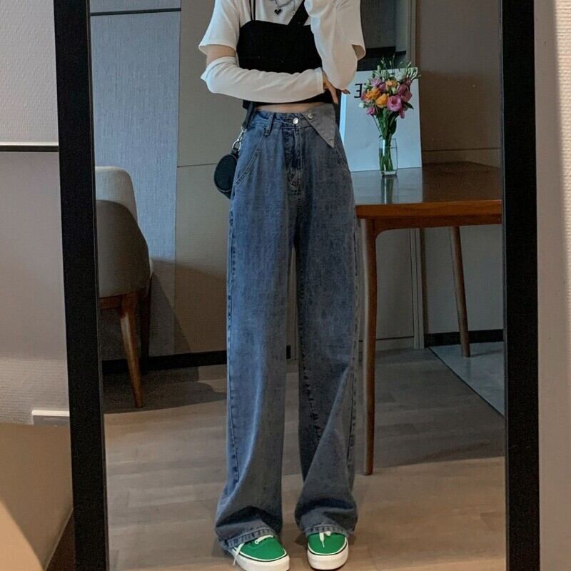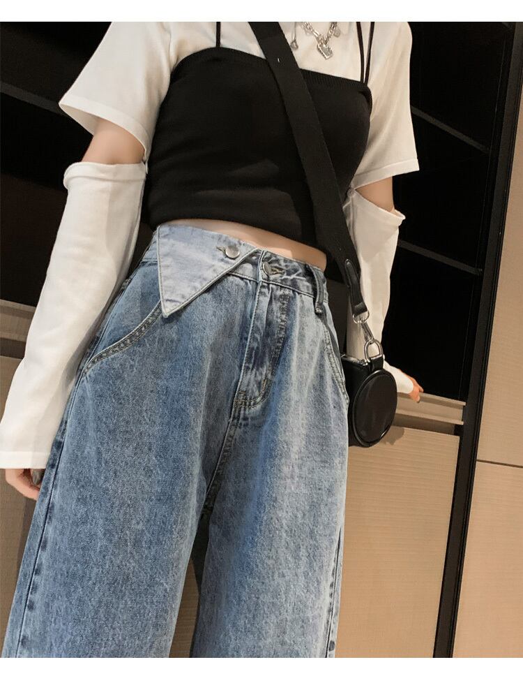 デニムパンツ ジーンズ カジュアルパンツ ハイウエスト シンプル カジュアル レトロ 韓国ファッション 2color S-XL