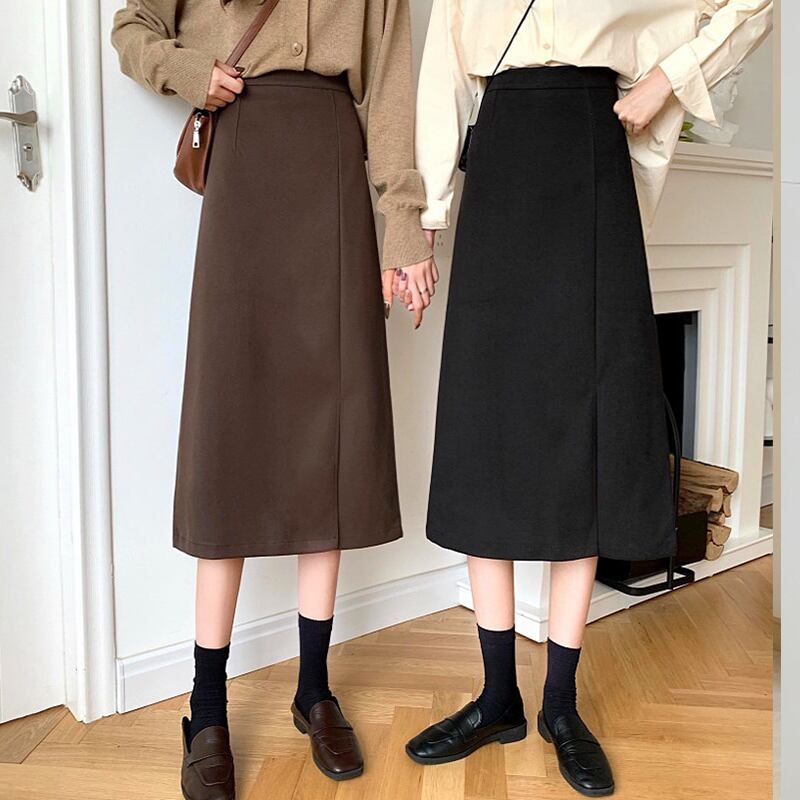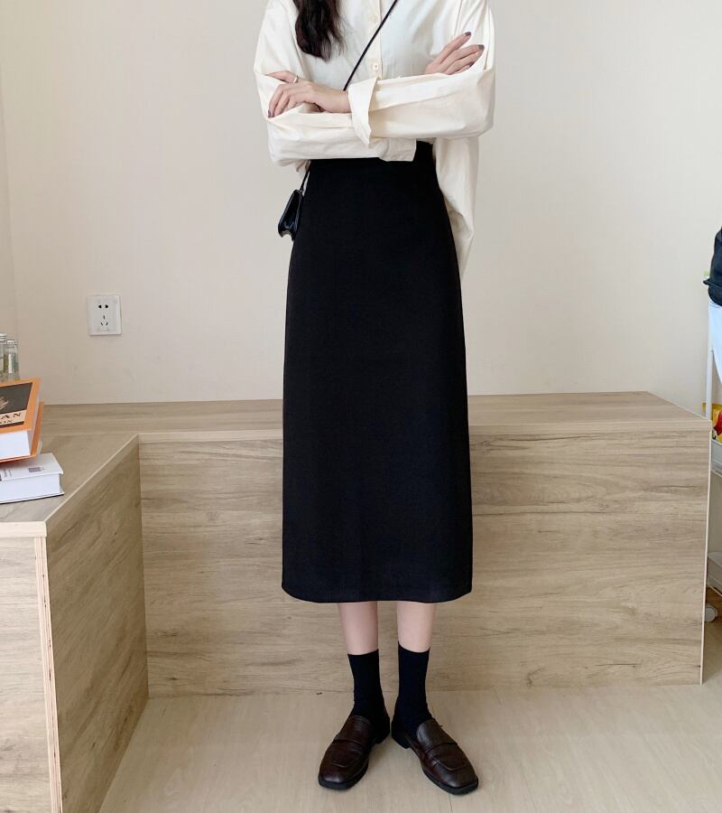 スリットスカート スカート ミモレ 無地 シンプル フェミニン レトロ きれいめ 韓国ファッション 2color S-XL