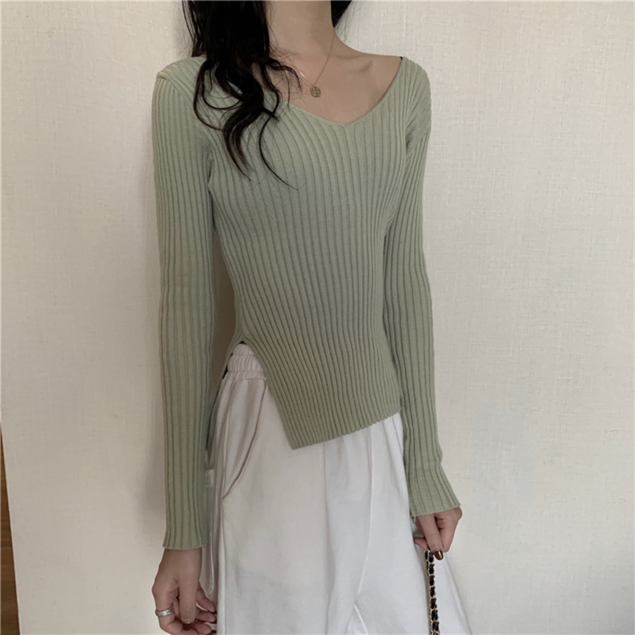 ニット レディース 無地 韓国ファッション カジュアル カラバリ豊富 シンプル サイドスリット