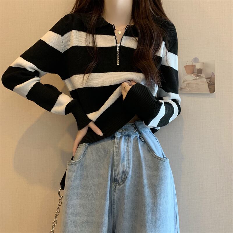 ポロニット ボーダー カジュアル 可愛い 大人可愛い 韓国ファッション レディース