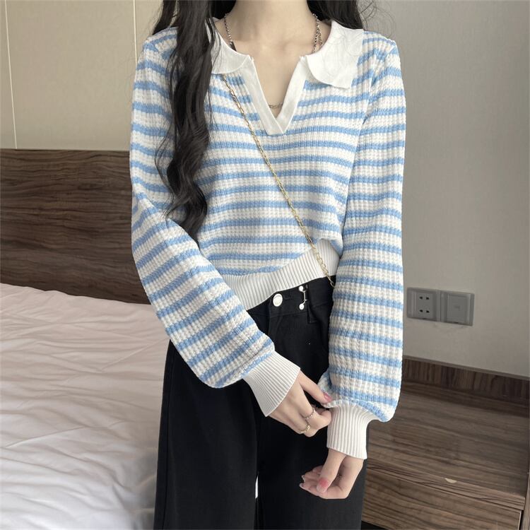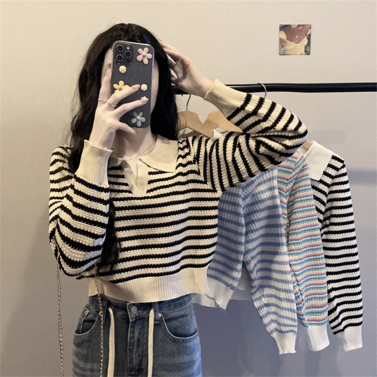 ポロニット ボーダー カジュアル 可愛い 大人可愛い 韓国ファッション