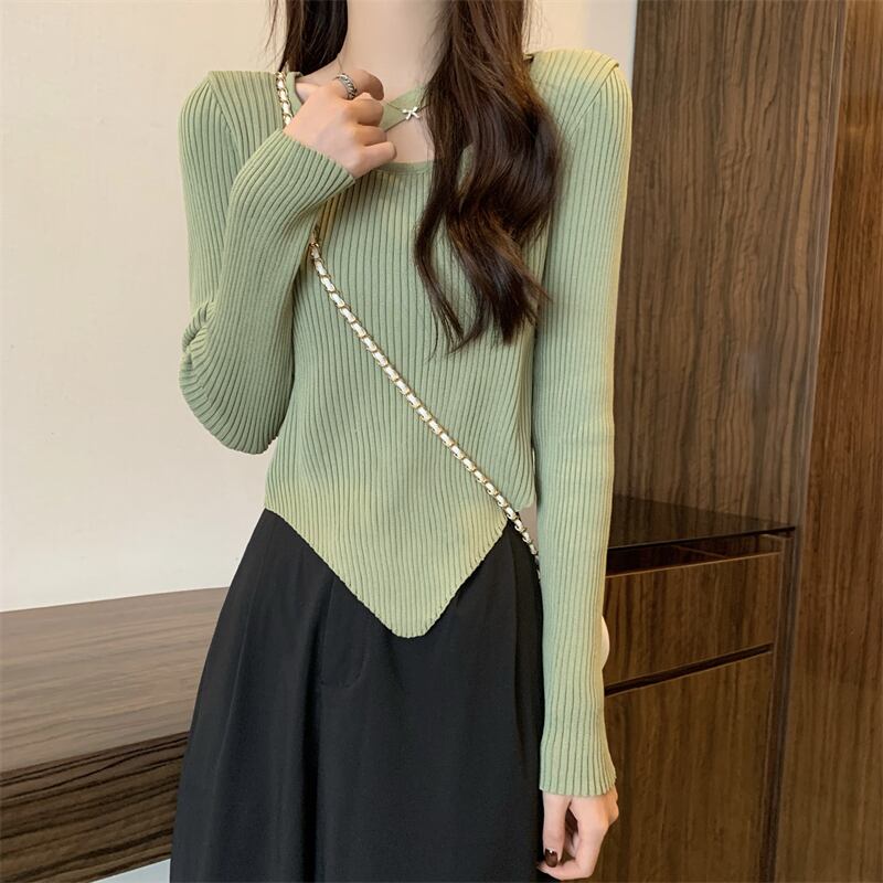ニットセーター ツーピース 長袖 シャツセーター インナー トップス カジュアル シンプル