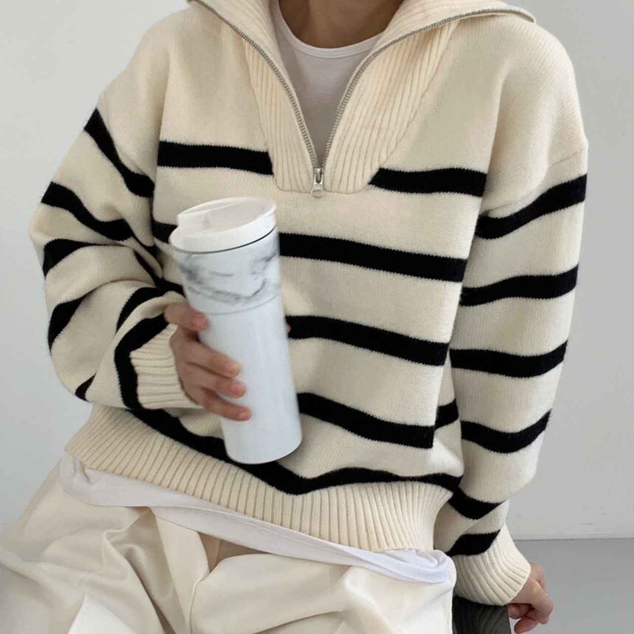 トップス ストライプ 韓国ファッション ボーダー ジッパー レディース 長袖
