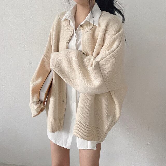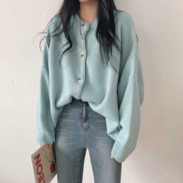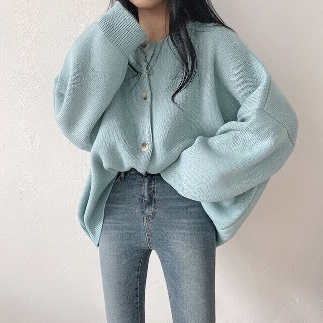 ニット カーディガン レディース フロントボタン 長袖 ラウンドネック
