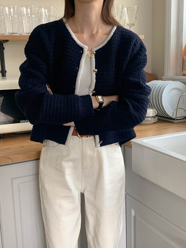 カーディガン トップス アウター 羽織物 韓国ファッション 長袖 フロントボタン 暖かい 冬 大人可愛い カジュアル 無地 ラウンドネック