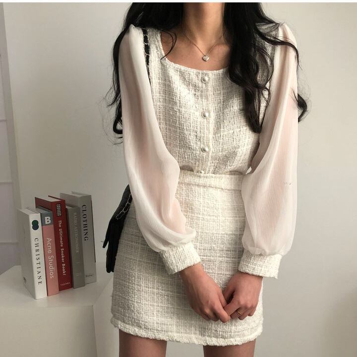 上下セット トップス ミニスカート エレガント レディース 韓国ファッション タイトスカート大人カジュアル 可愛い セクシー シフォン ハイウエスト