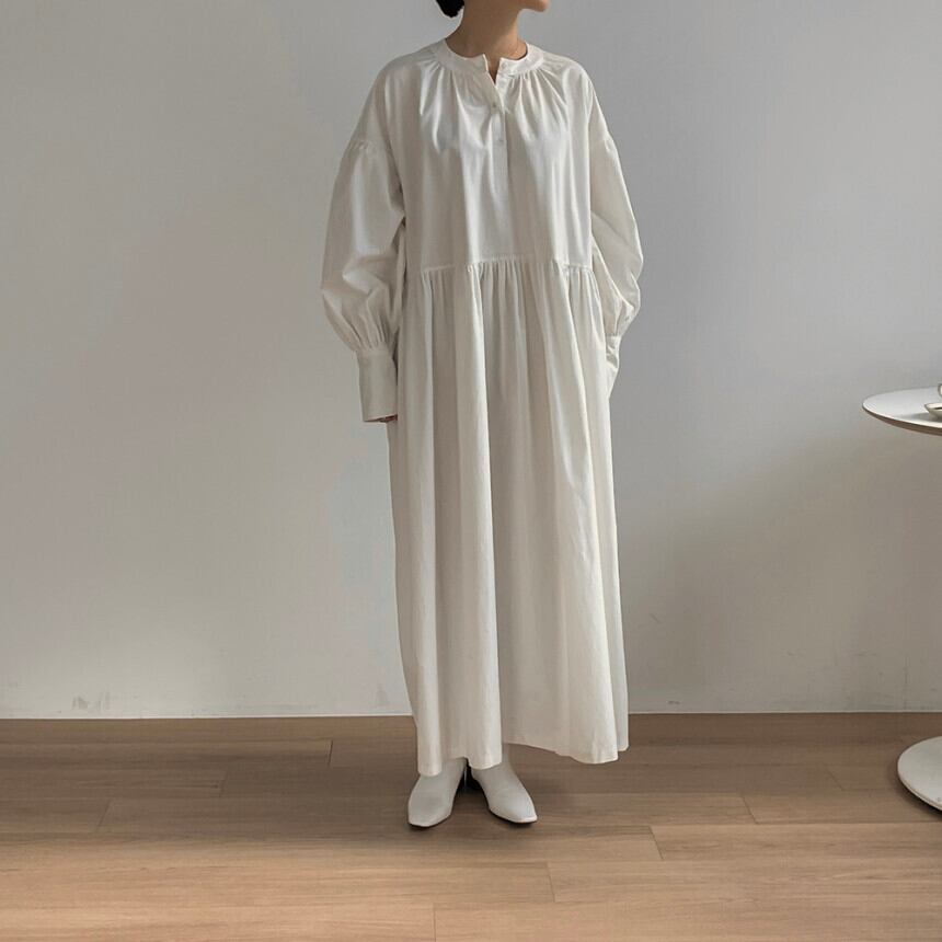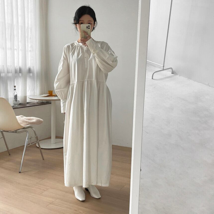 ワンピース レディース ロングワンピース 韓国ファッション 大人可愛い カジュアル シンプル 長袖 フェミニン ロングドレス 無地 大人っぽい