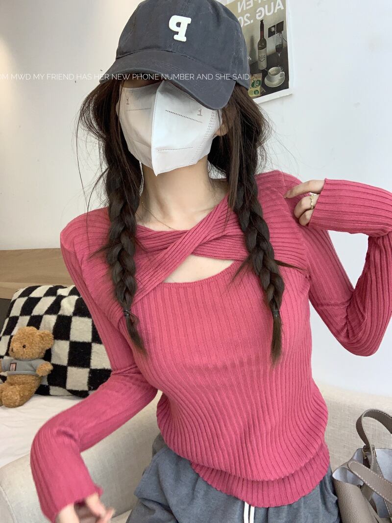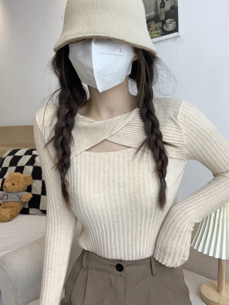 ニット トップス カジュアル 無地 大人可愛い シンプル 長袖 レディース 韓国ファッション セクシー スリム