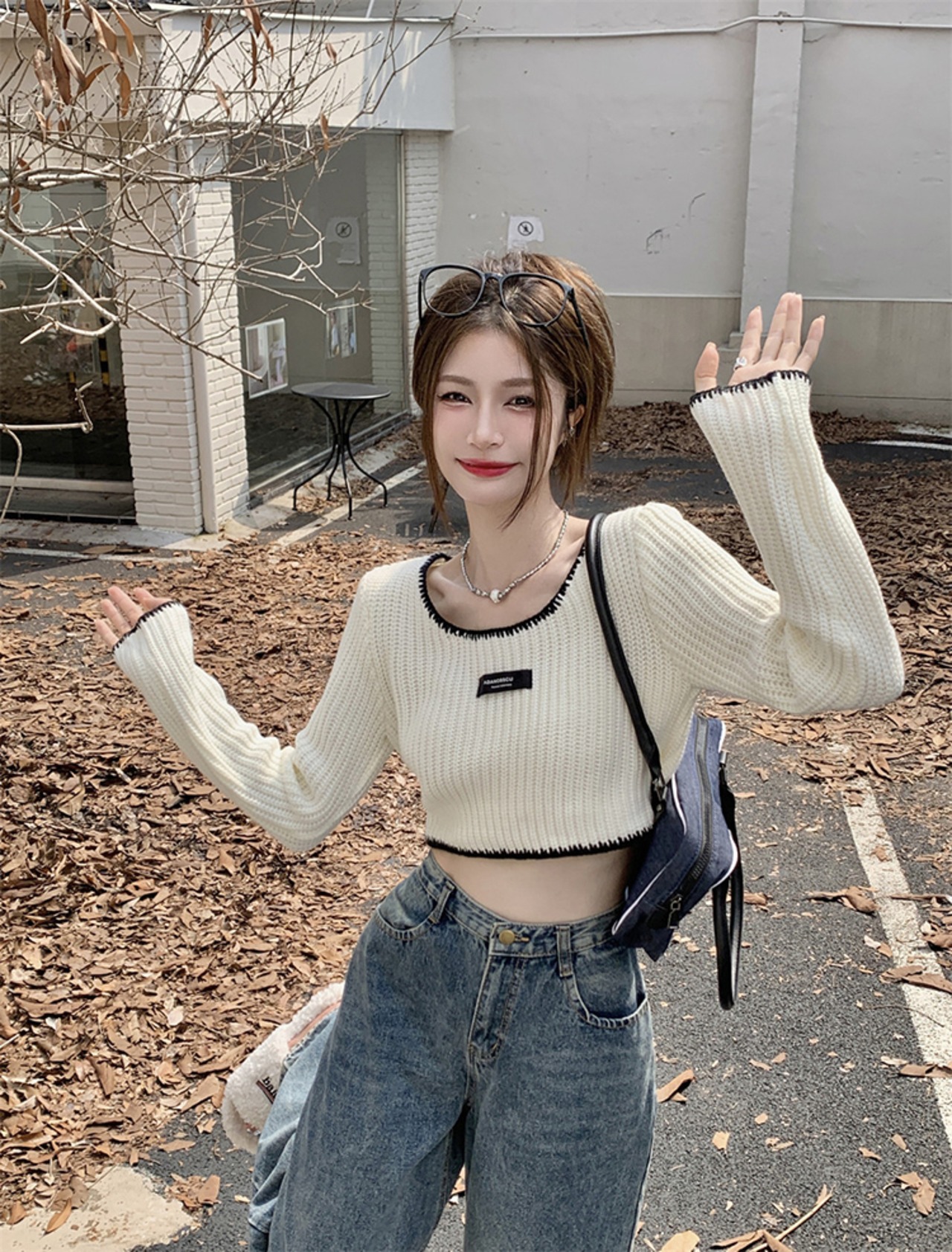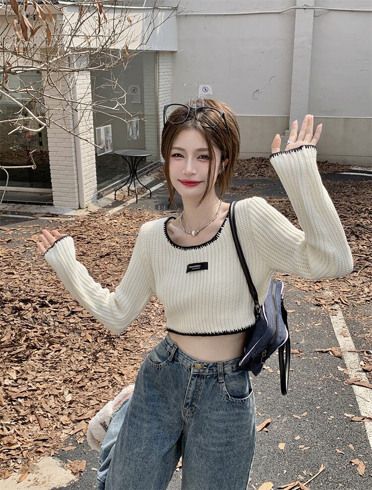 トップス ニット ショート丈 韓国ファッション 大人カジュアル バックリボン カジュアル 可愛い ラウンドネック 長袖