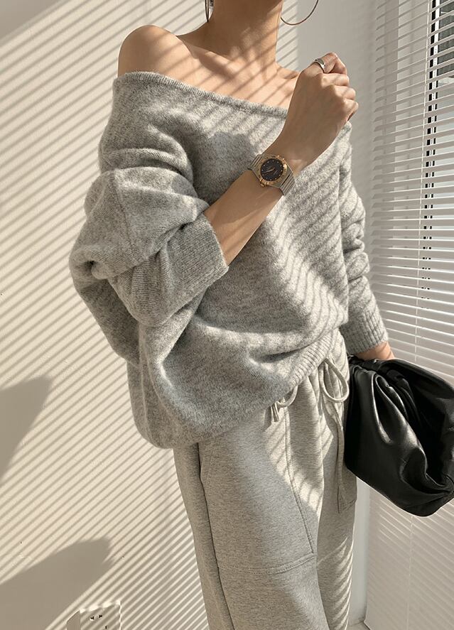 ワンショルダー長袖セーター トップス ルーズオールマッチトップタイド 長袖セーター 韓国ファッション 可愛い 大人カジュアル 無地 長袖 オーバーサイズ レディース