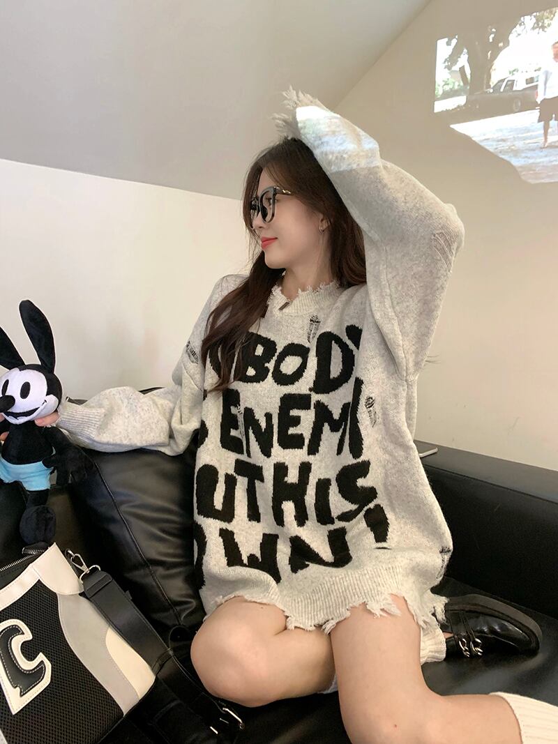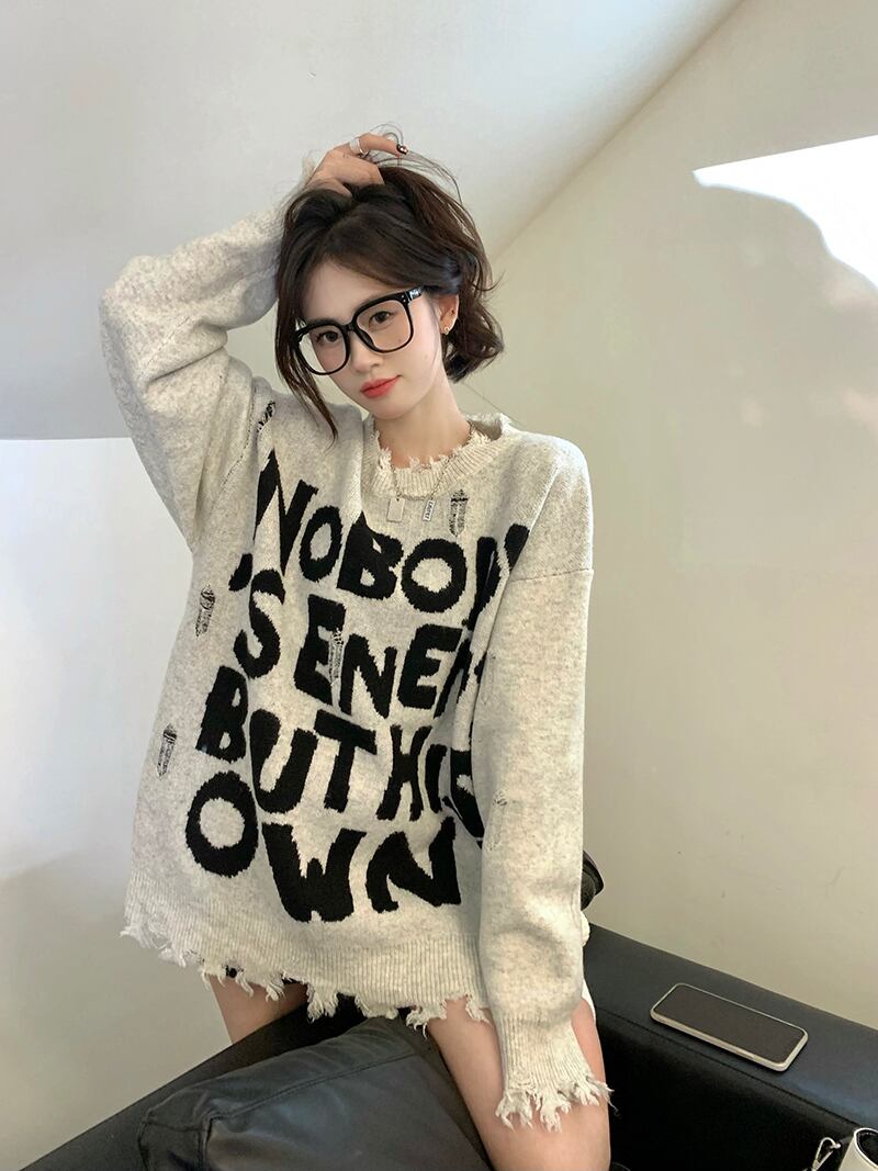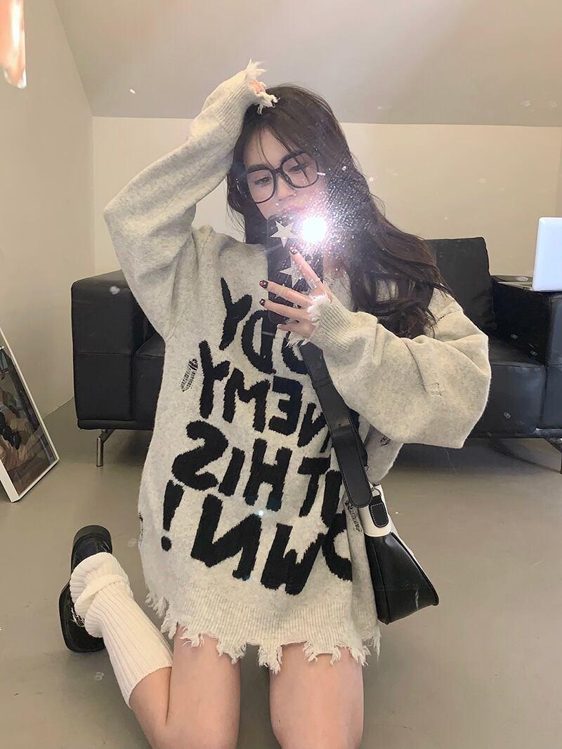 セーター 文字ゆったり ミドル丈 長袖 ニット 大人可愛い アメリカンスタイル レディース スリム おしゃれな 大人カジュアル