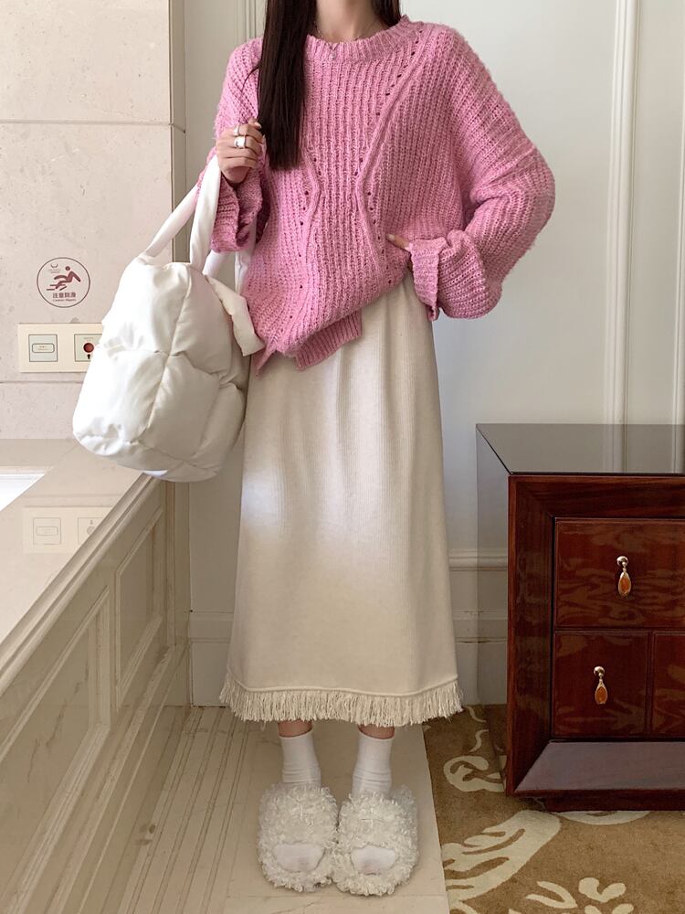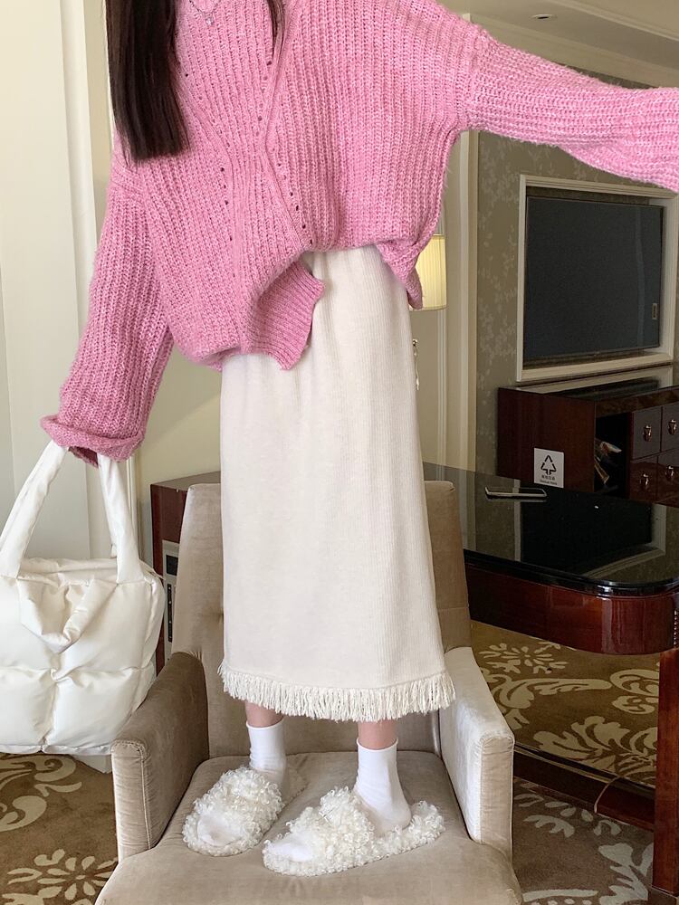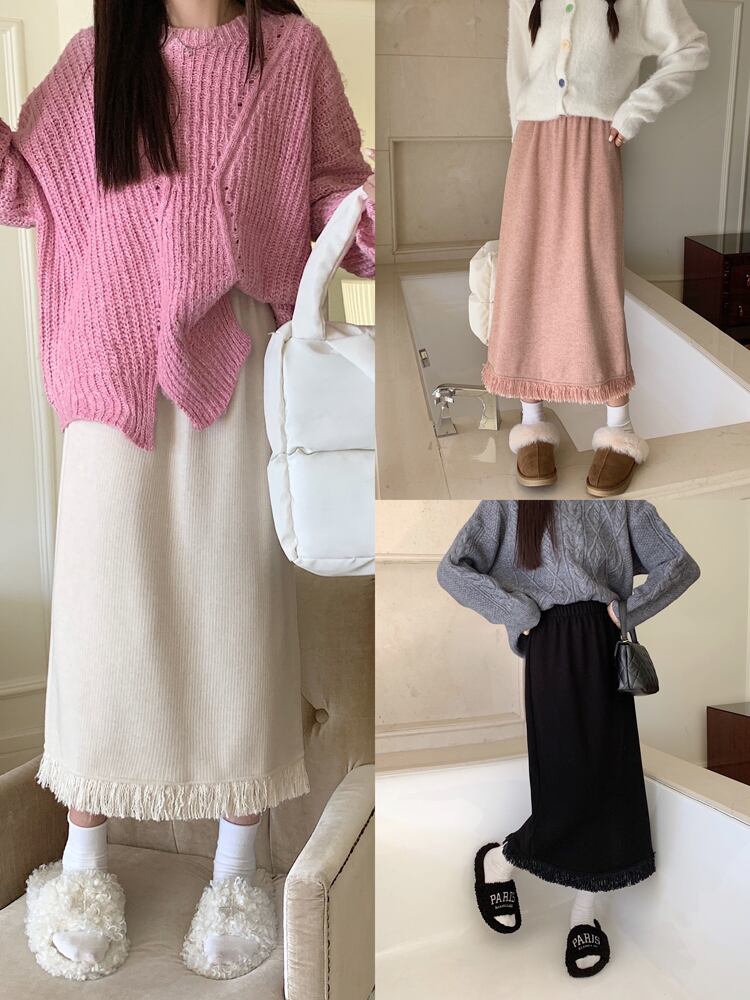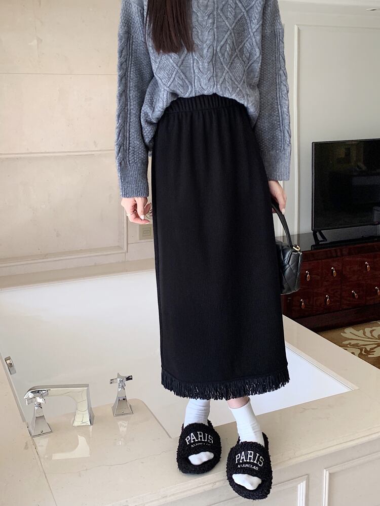 ミドル丈タッセルドレープスカート ハイウエスト可愛い スリム フィット バッグ スカート レディース 大人可愛い 大人カジュアル