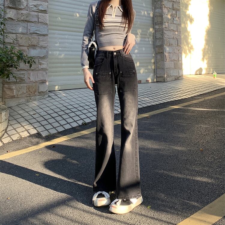 デニムパンツ ジーンズ カジュアル 大人カジュアル 大人可愛い ワイドパンツ ハイウエスト ジッパー ロングパンツ スポーティー 大人っぽい
