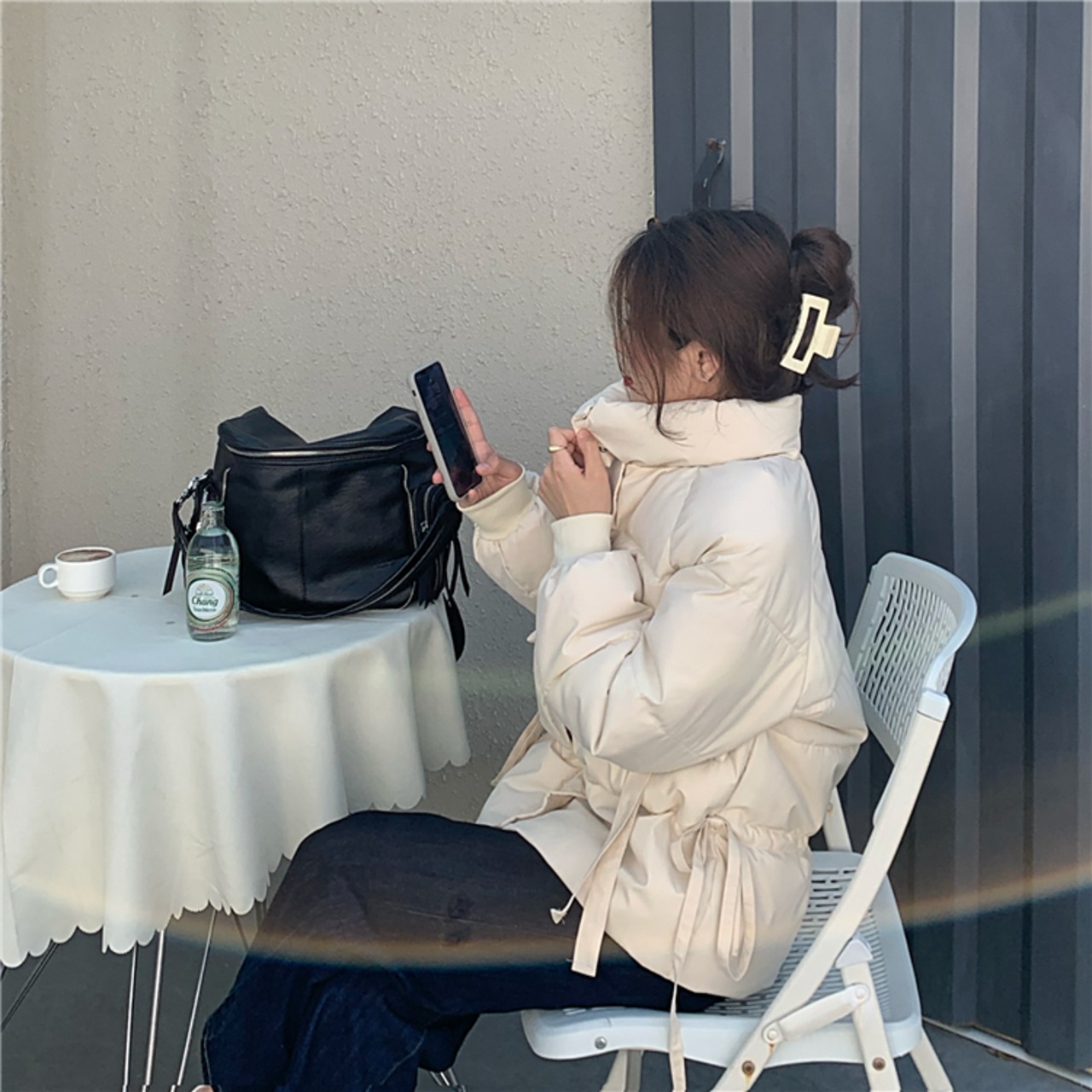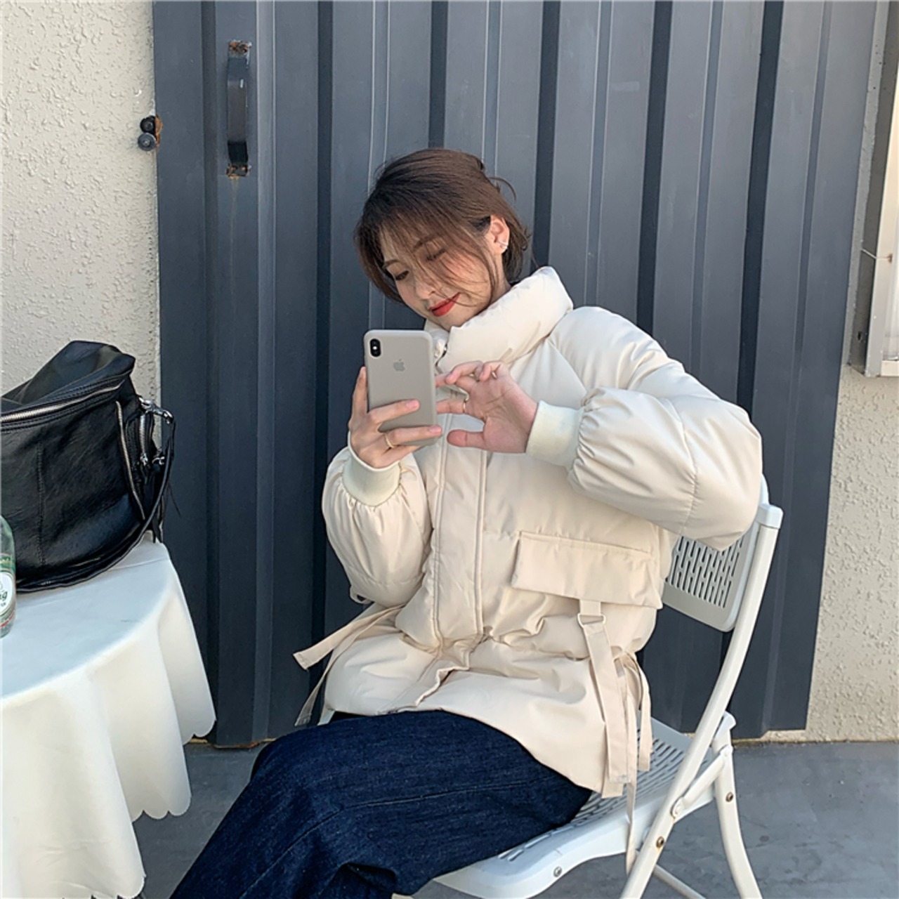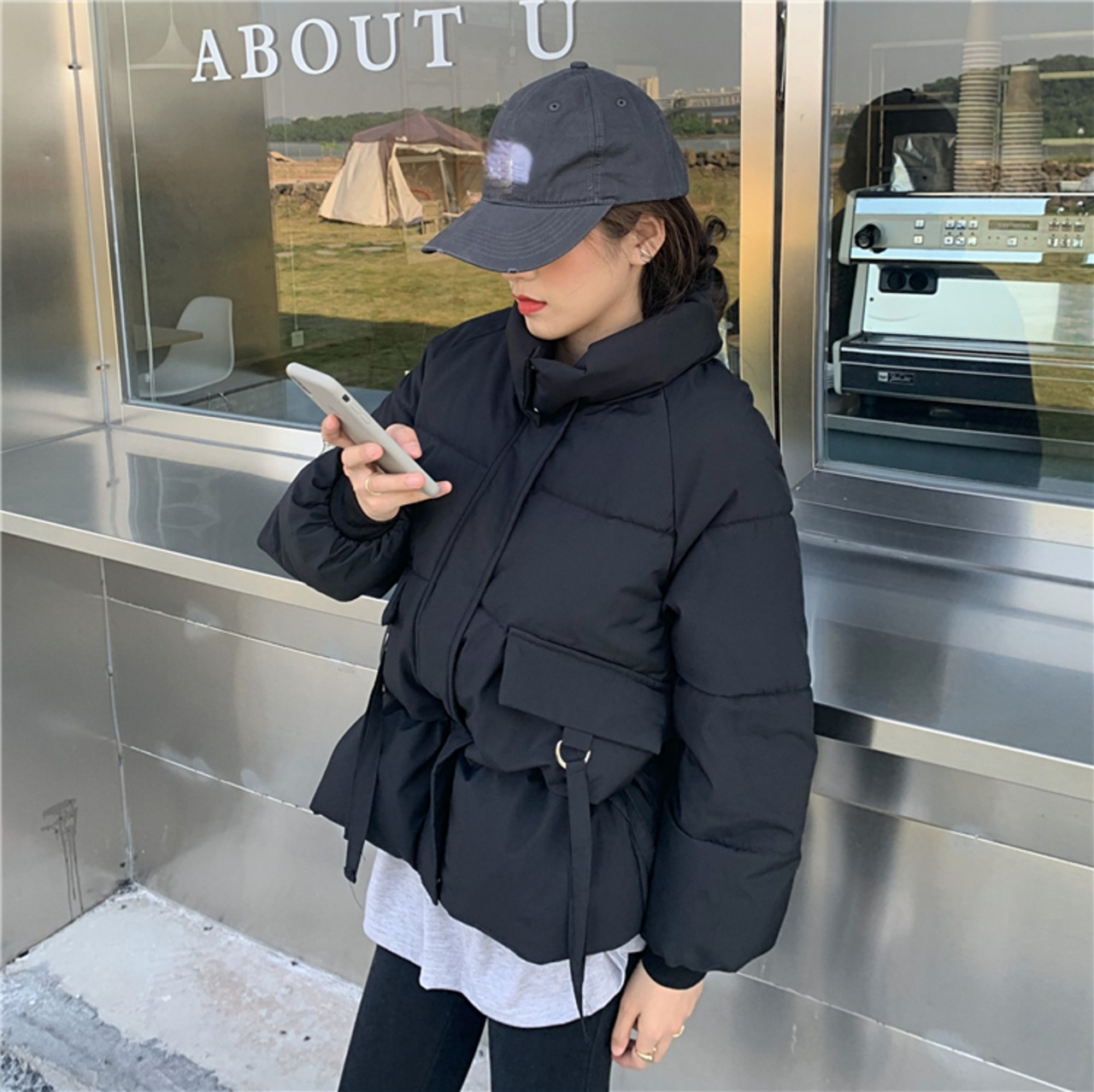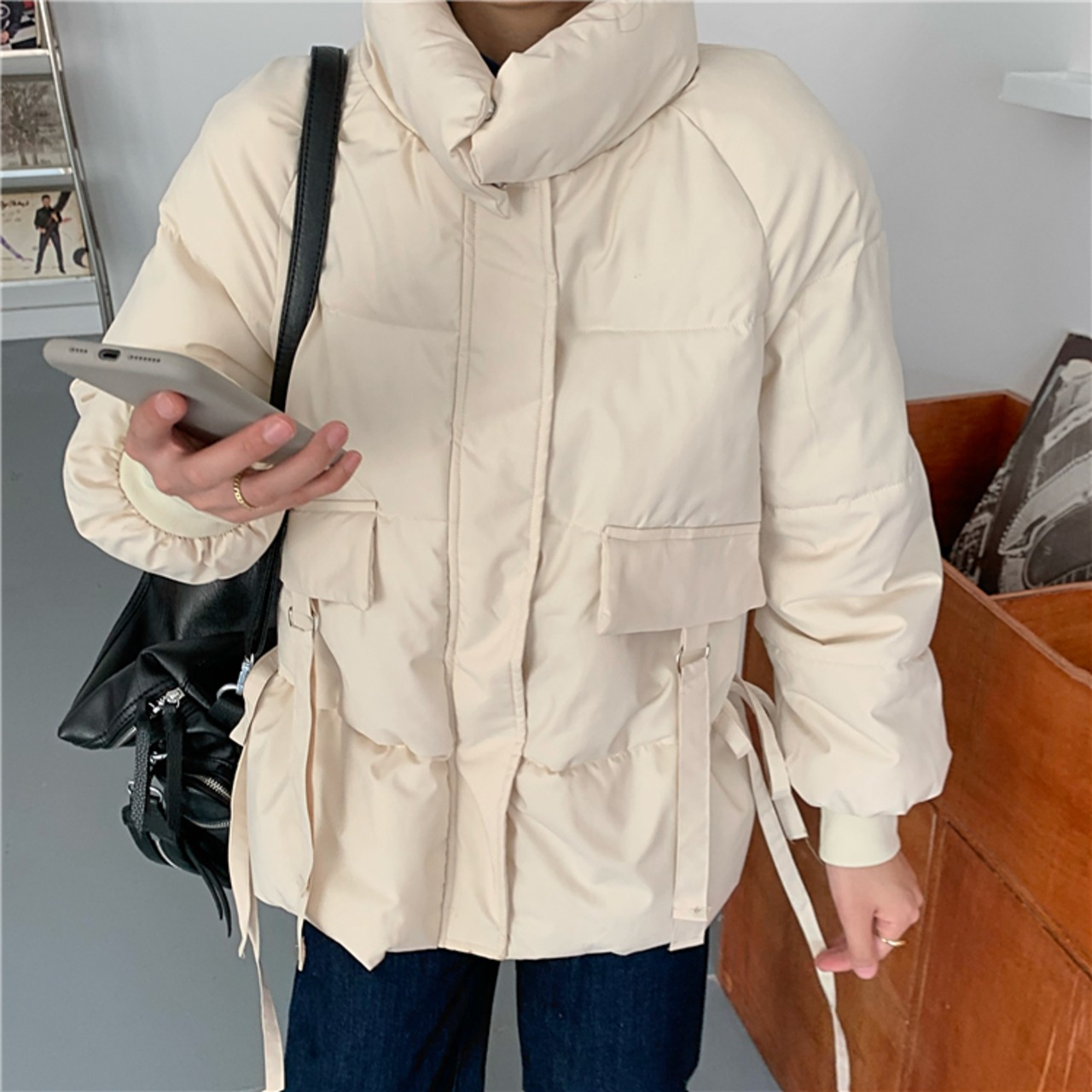 ルーズパッド入りジャケット イン アウター 長袖 シンプル 韓国ファッション 通勤 通学 お出かけ 可愛い