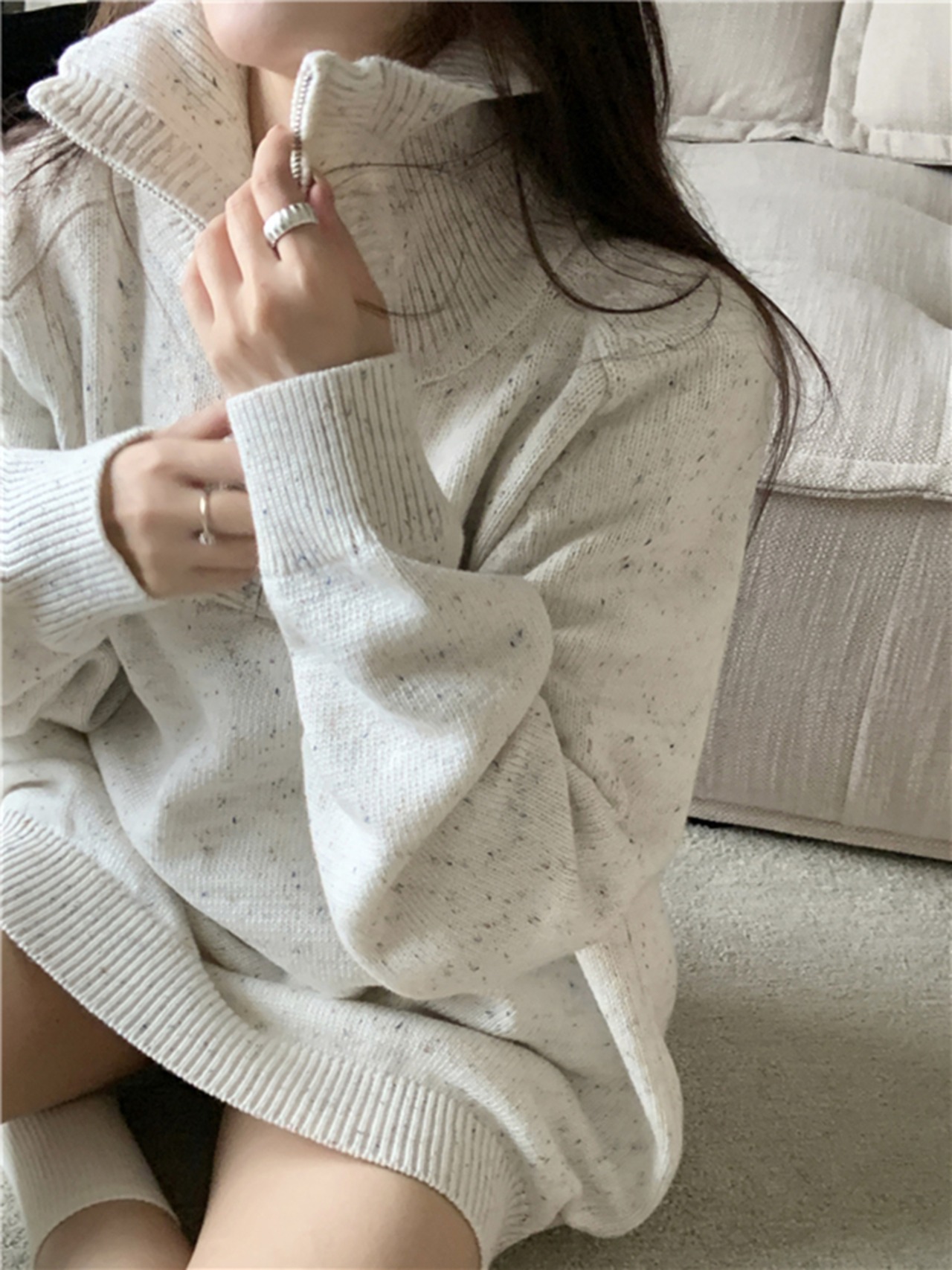 今季トレンドのミックスニットのハーフジップトップス◎