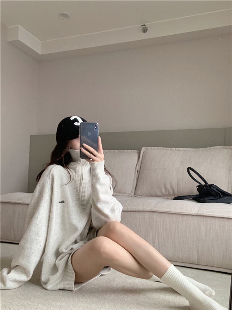 ハーフジッパー プルオーバー セーターシンプル レトロ ジャケットトップス 通勤 通学 お出かけ 可愛い