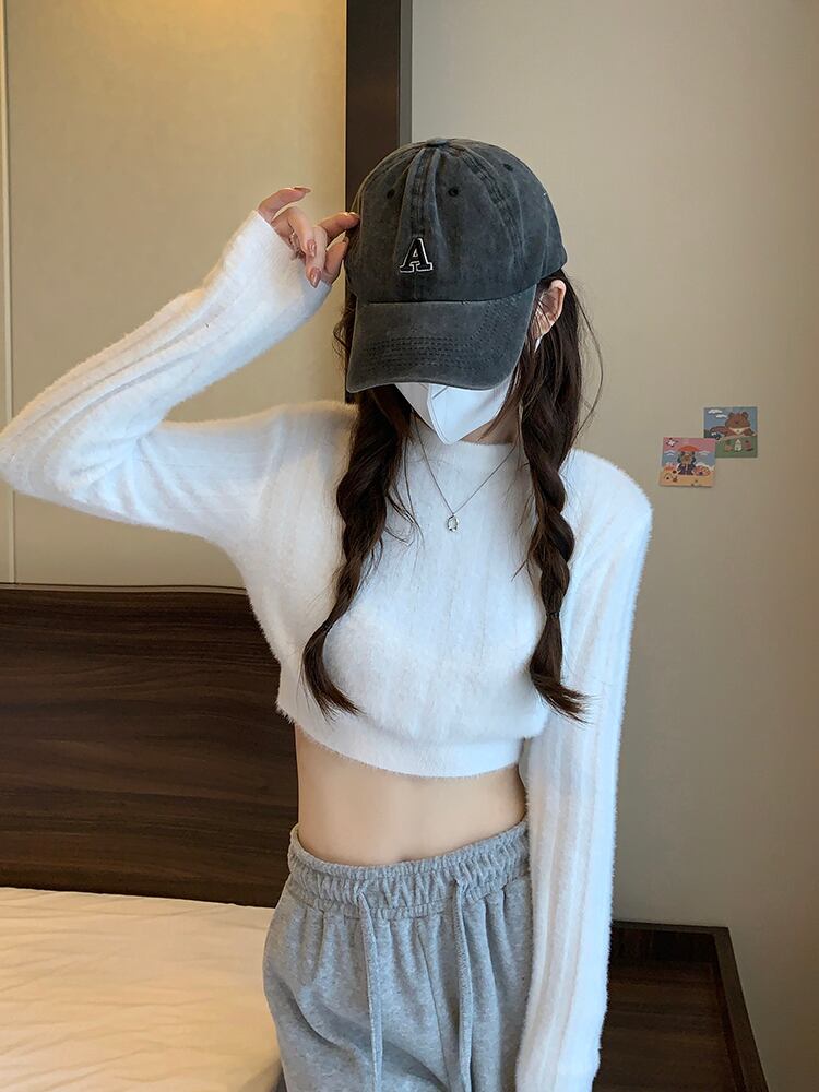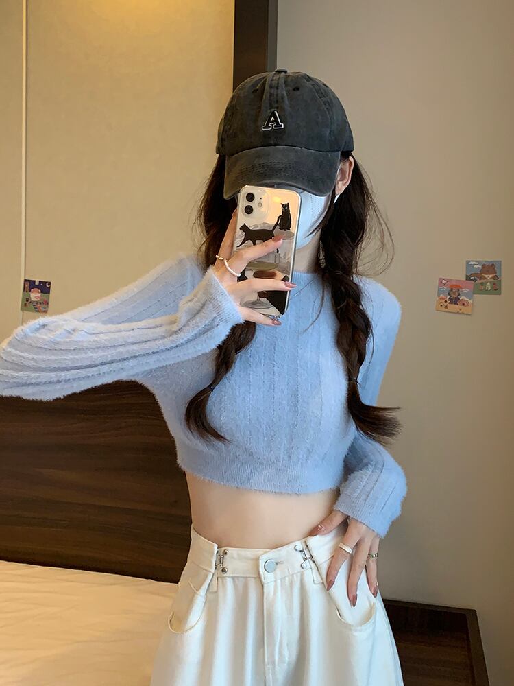 厚手 ニット セーター 韓国ファッション スリム カジュアル ファッション 可愛い 大人可愛い 無地 長袖 シンプル オーバーサイズ