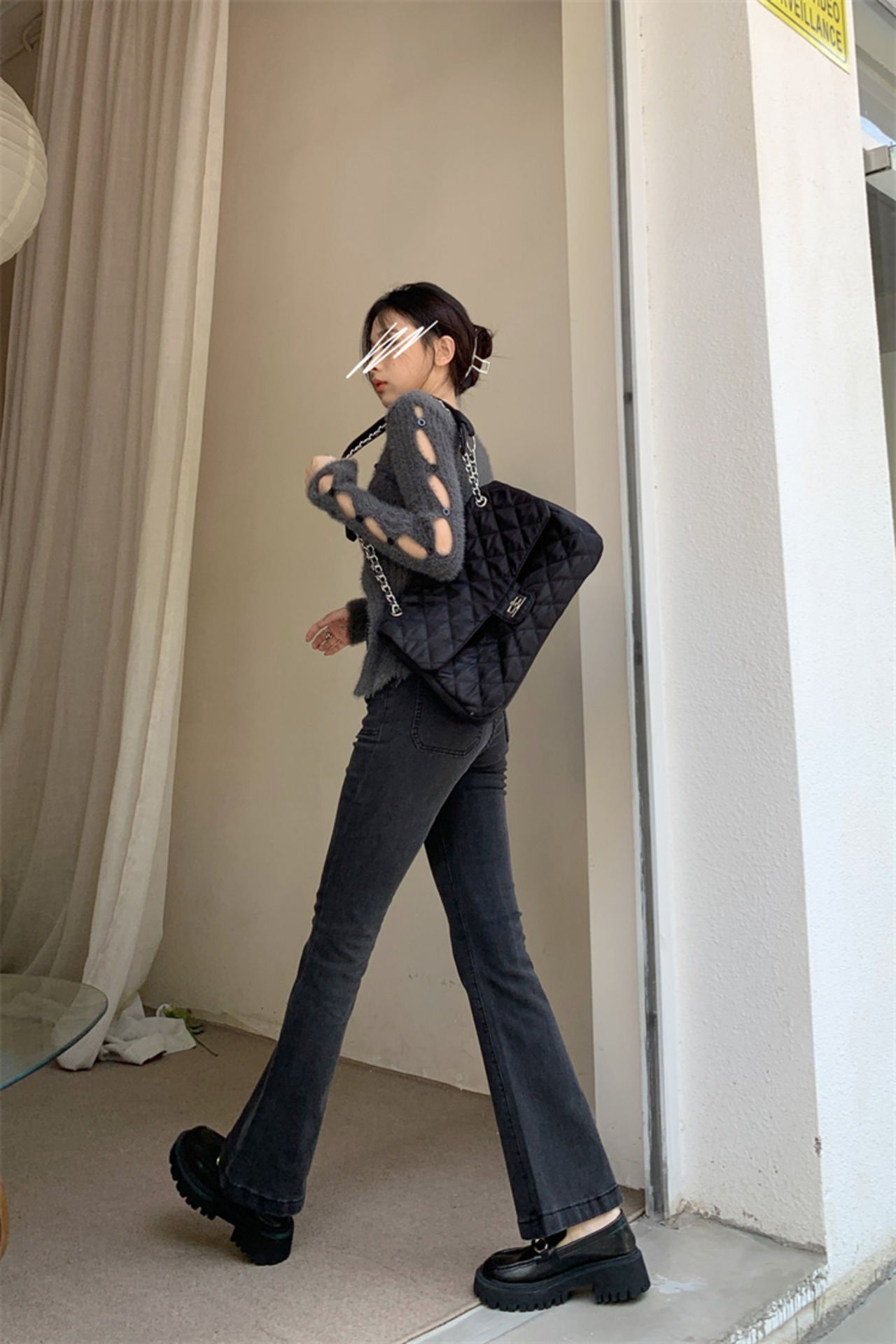 どんなトップスにも合わせやすいブラック ジーンズ。