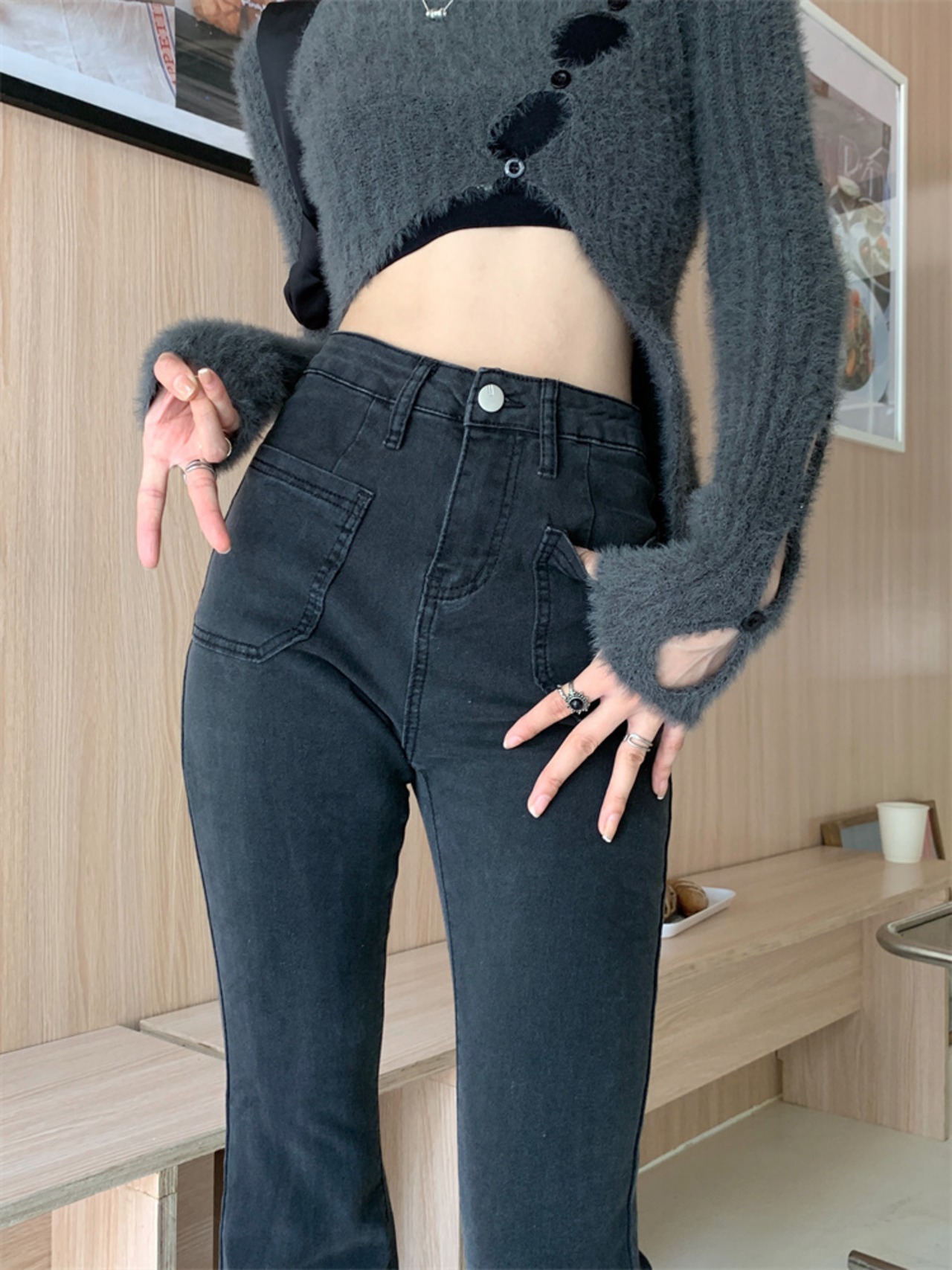 ブラック ジーンズ パンツ ストレート レギュラー フレア ワイドレッグ パンツ ボトム カジュアル ファッション