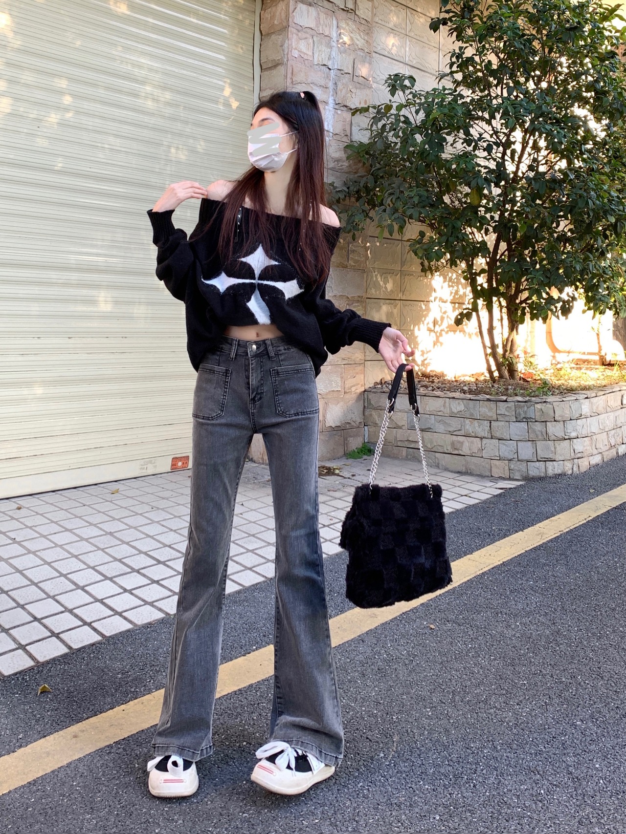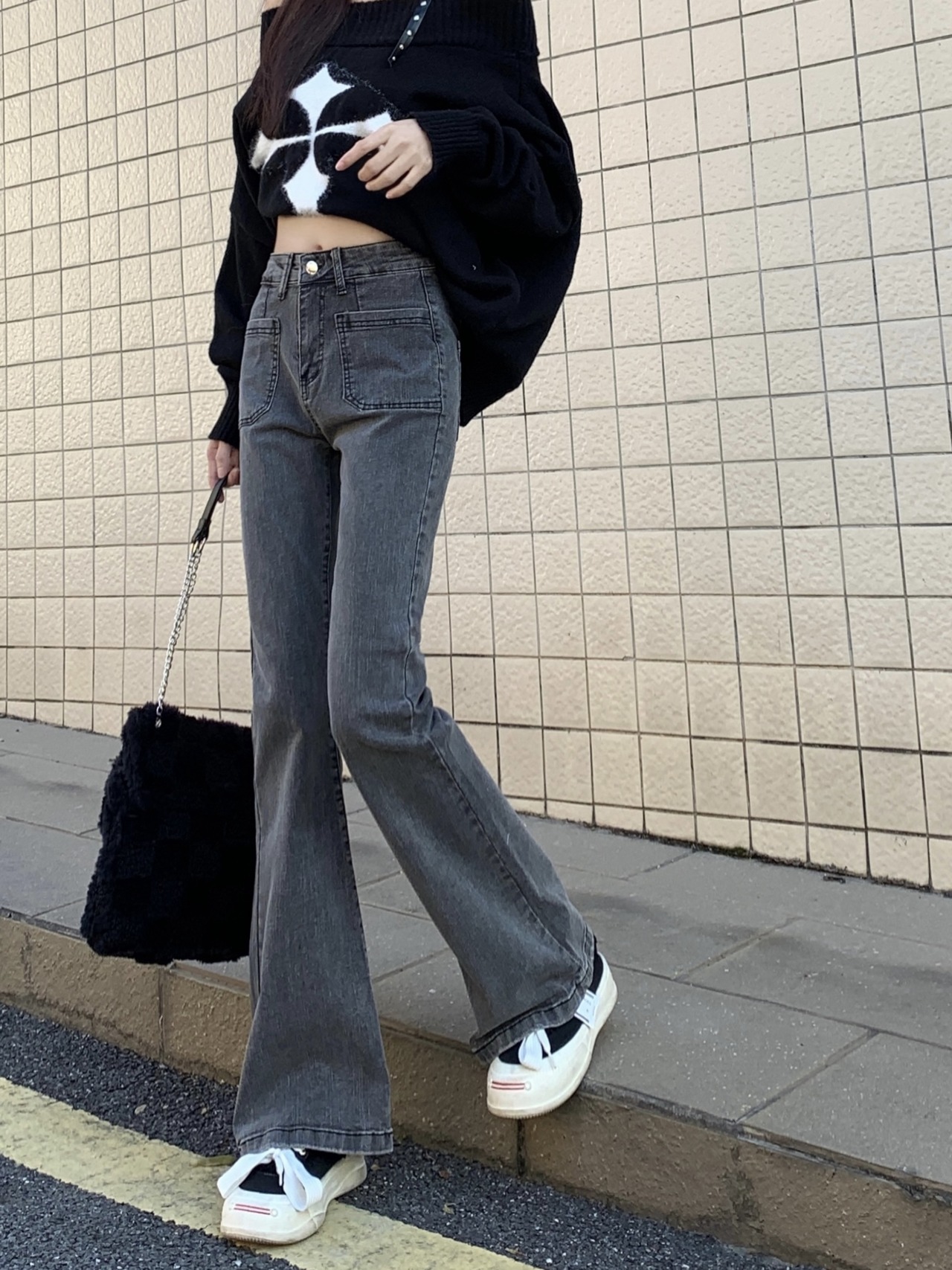 グレー ジーンズ パンツ ハイウエスト スリム ボトム カジュアル ファッション 可愛い 大人 スリム