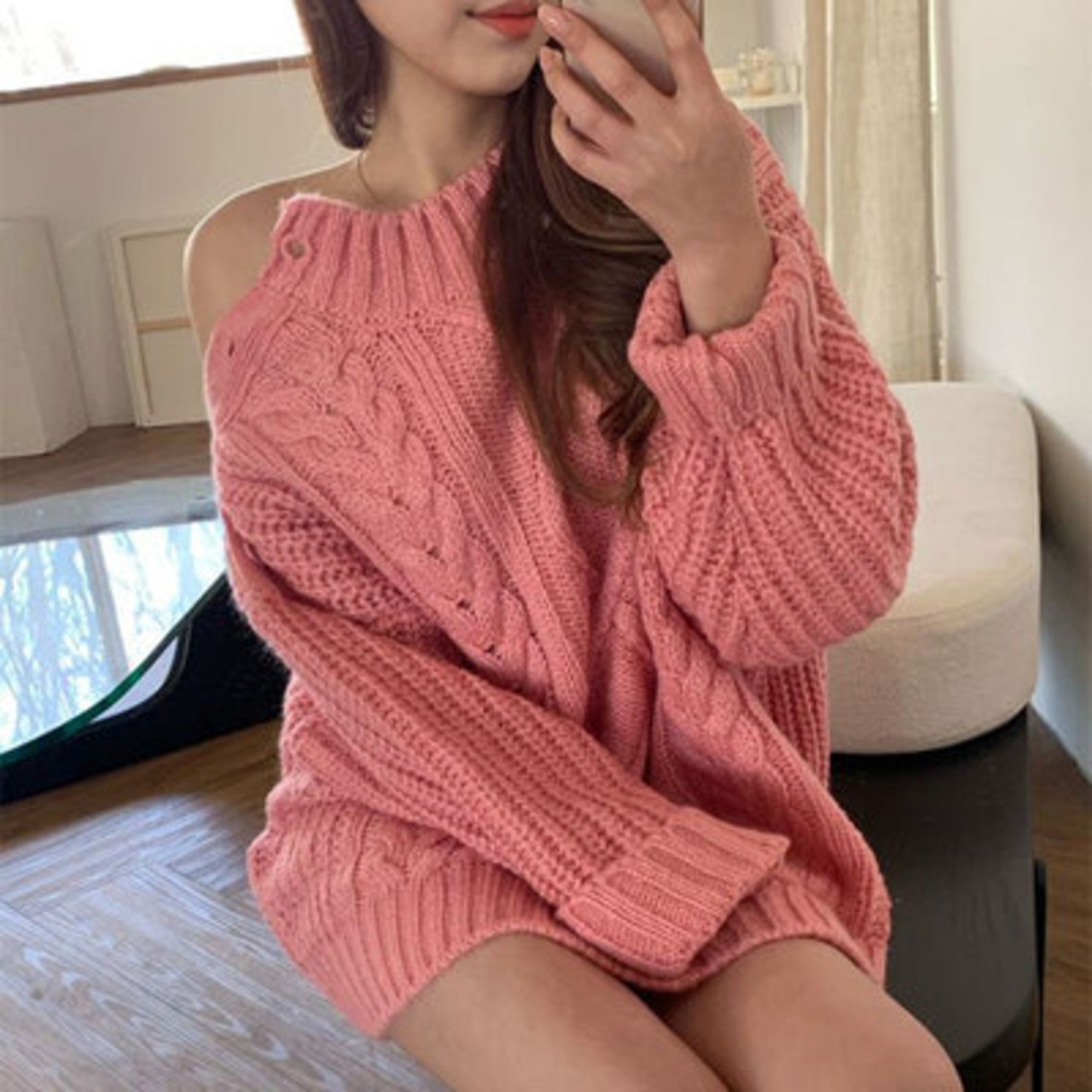 長袖 ニットセーター ラウンド ネック サイドボタン 韓国ファッションスーツ カジュアル 大人