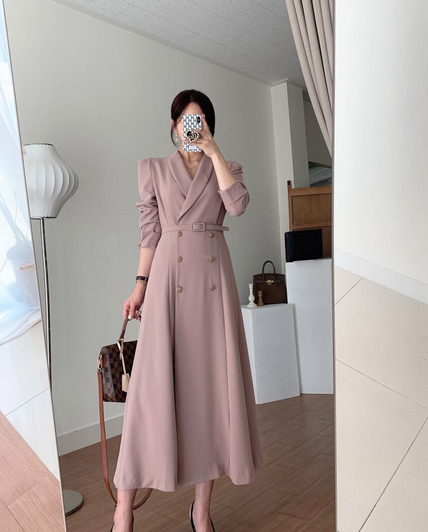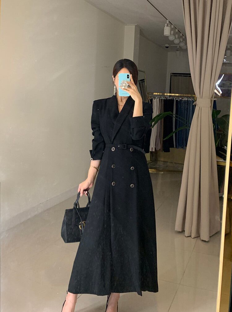 エレガント スーツ 襟ダブル ブレスト バックル ストラップ ウエスト 無地 ロング ウインドブレーカー ドレス ワンピース カジュアル レトロ 可愛い ゴージャス