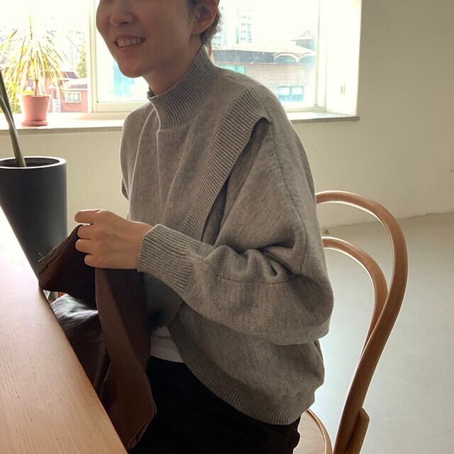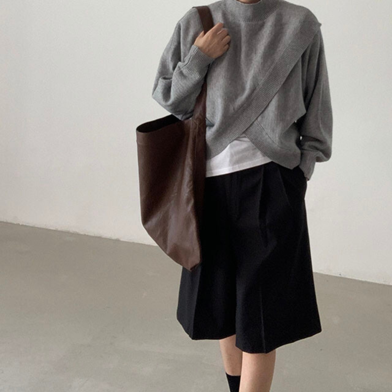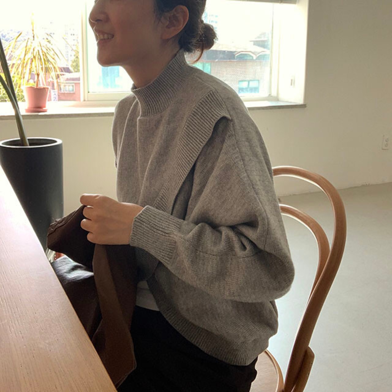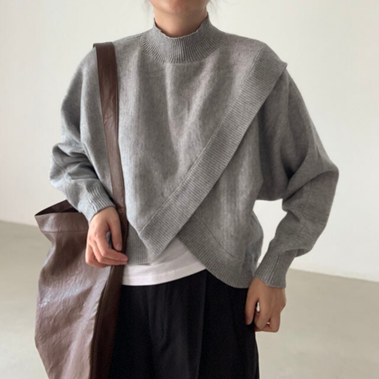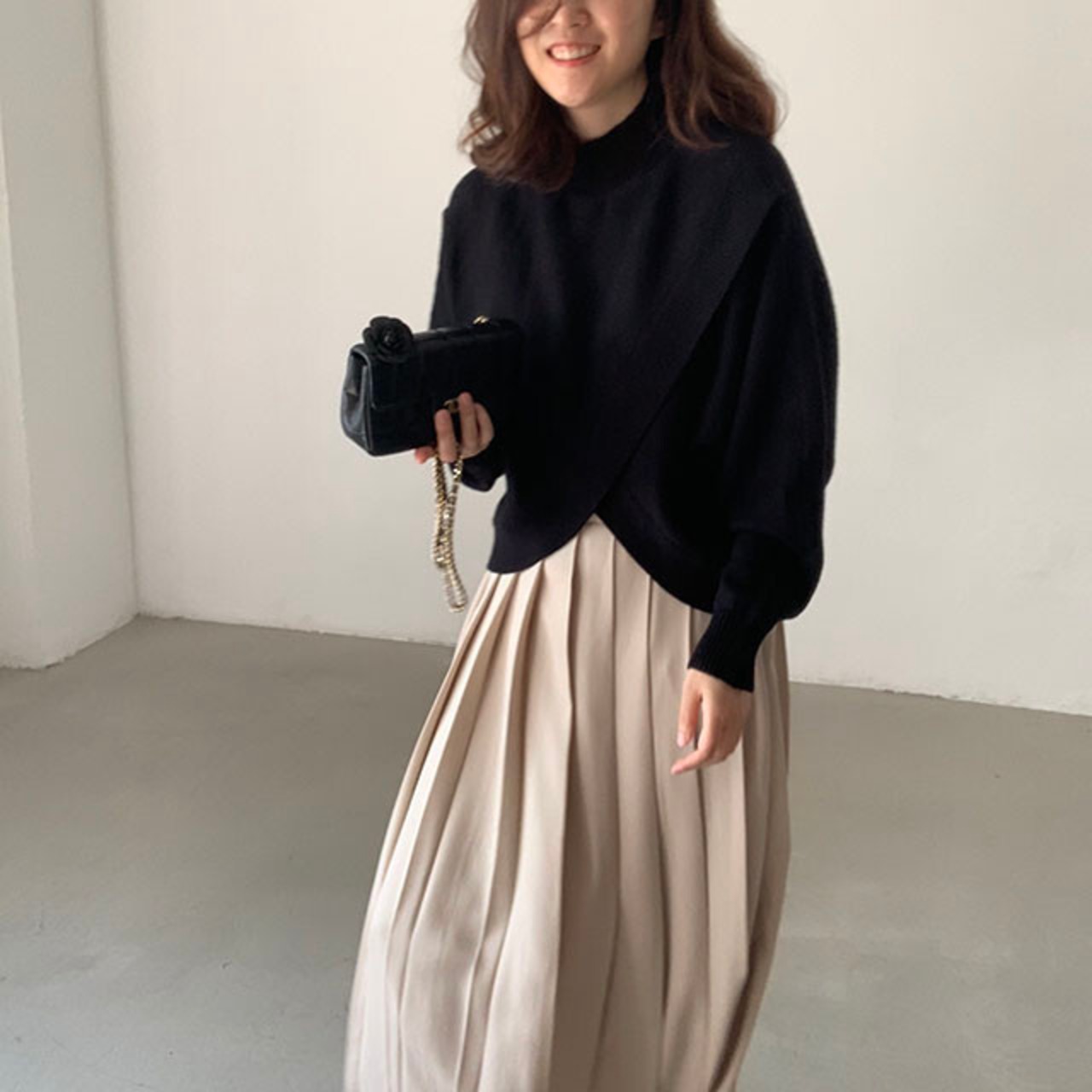 長袖 ニット セーター スタンドカラープルオーバー レディース レギュラークロススリット 肌に優しい トップス 韓国ファッション 大人可愛い 大人カジュアル 無地 シンプル おとっぽい 可愛い 長袖