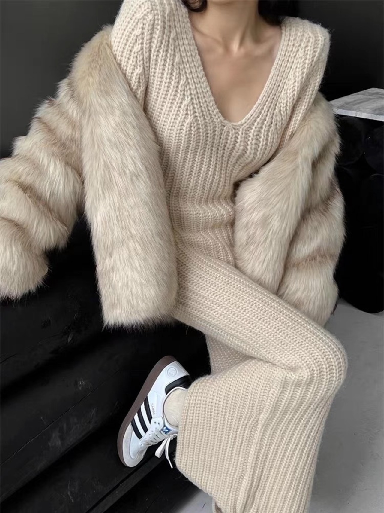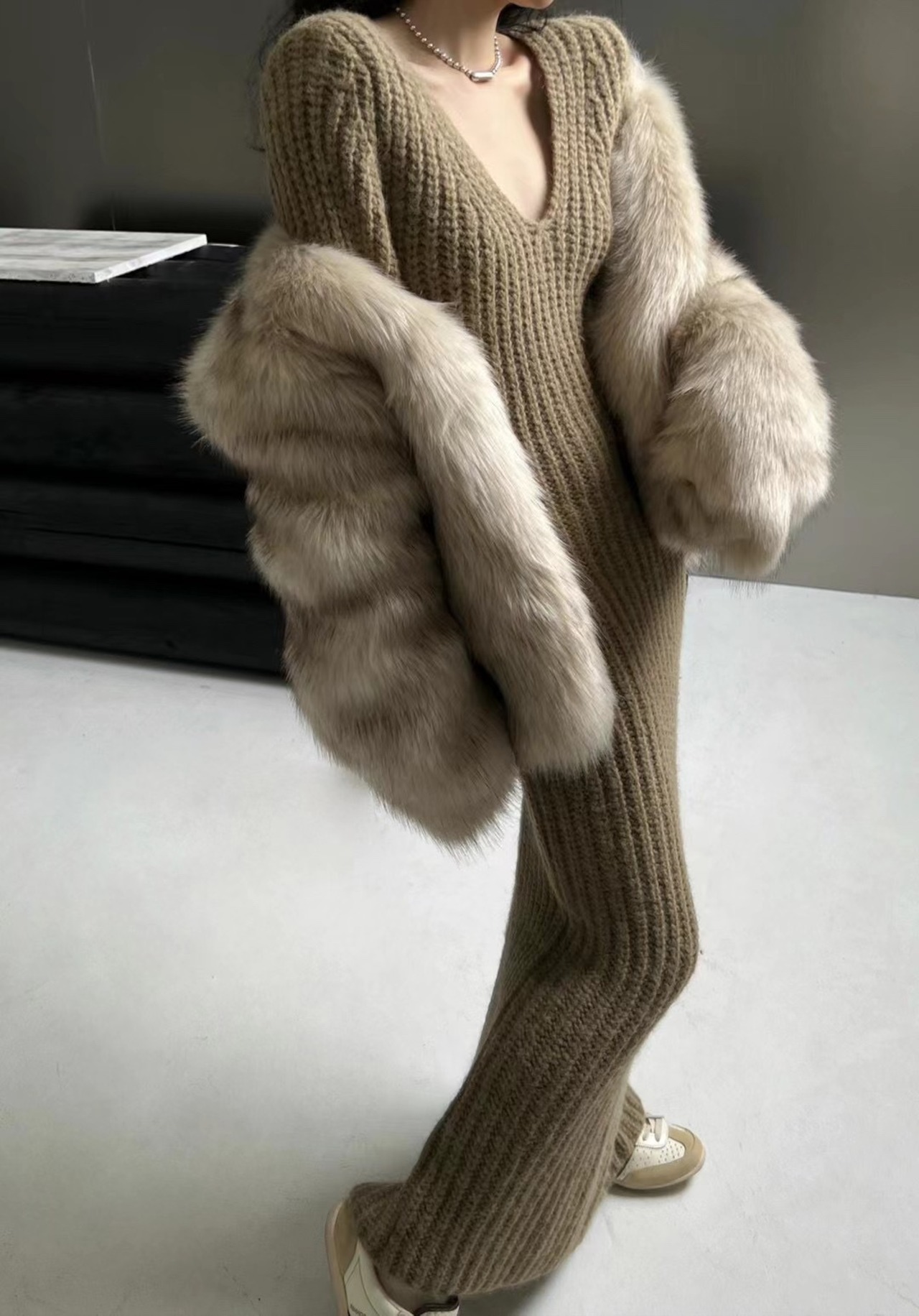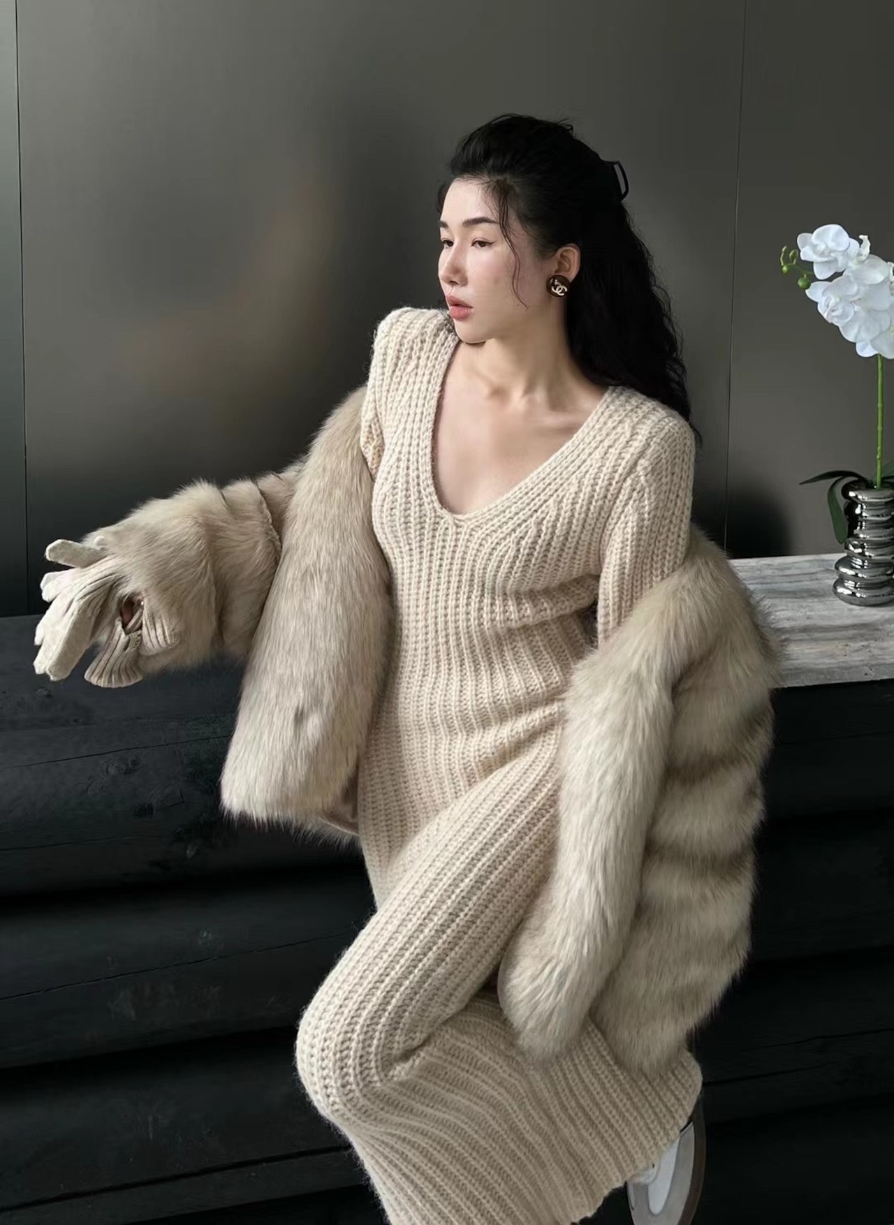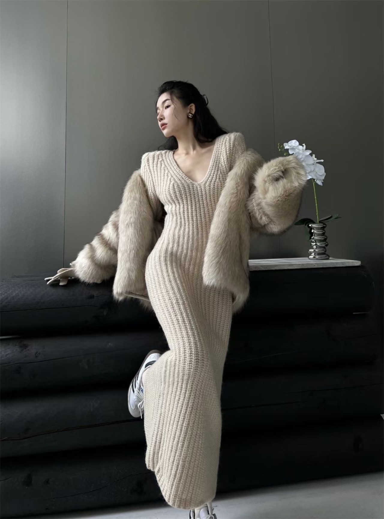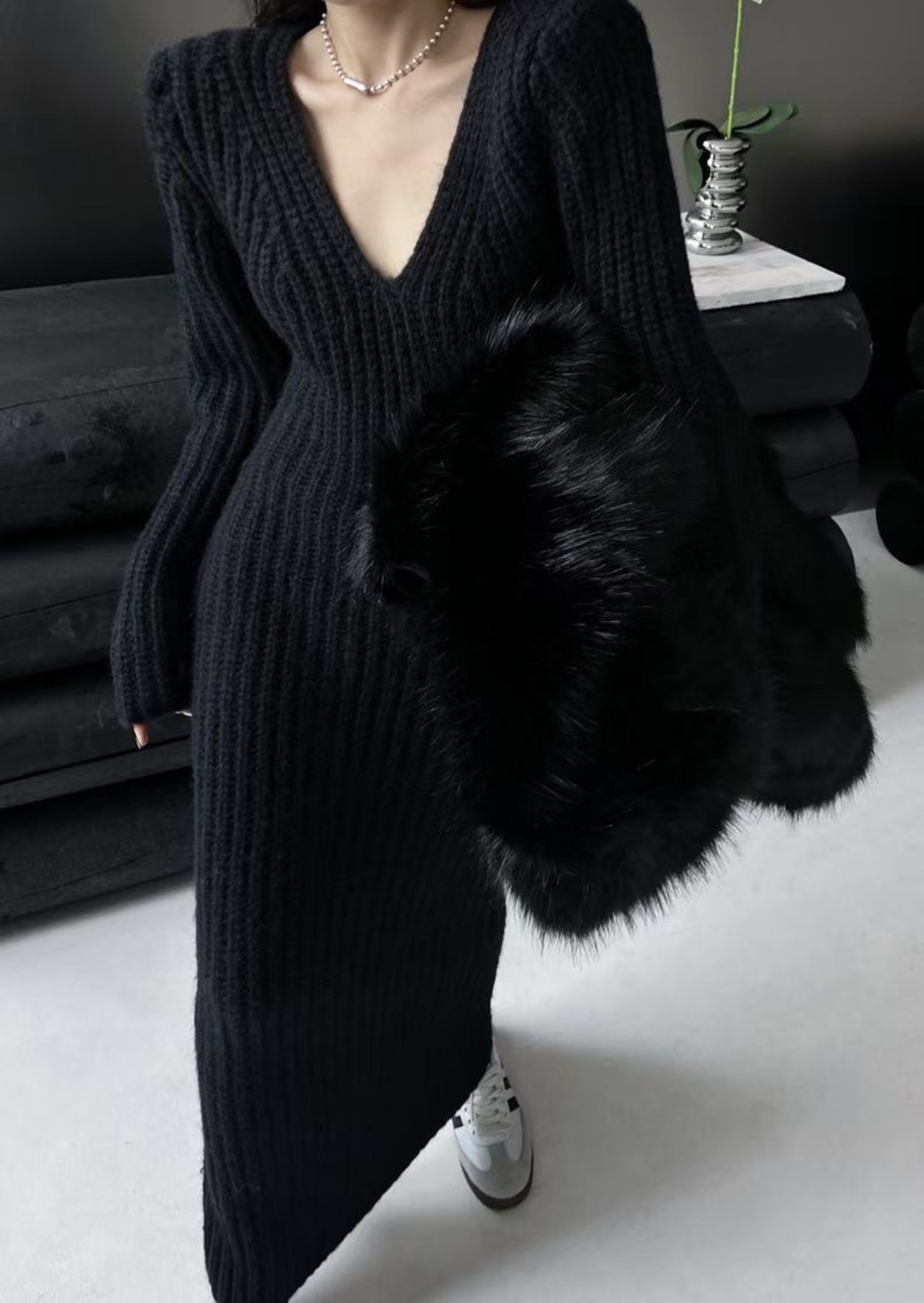 V ネック ピット ストリップ 長袖ニット バッグ ヒップ ドレス ロング スカート ワンピース レディース トップス 韓国ファッション 大人可愛い 大人カジュアル シンプル 可愛い